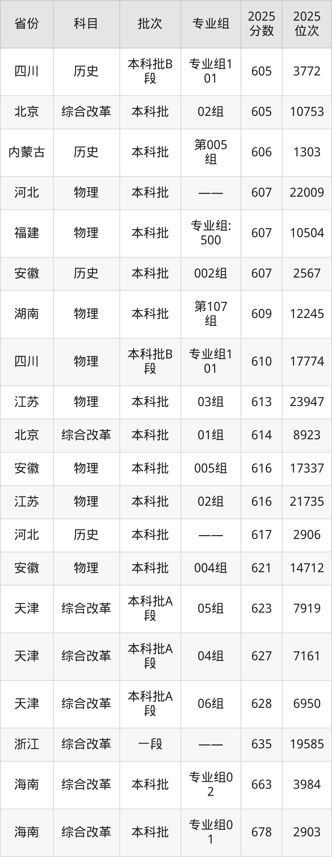 最高录取分数线是621分,对应位次是14712名,招生地区为安徽。