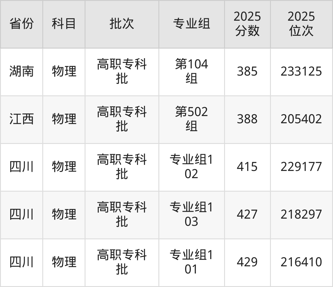 最高录取分数线是429分,对应位次是216410名,招生地区为四川。