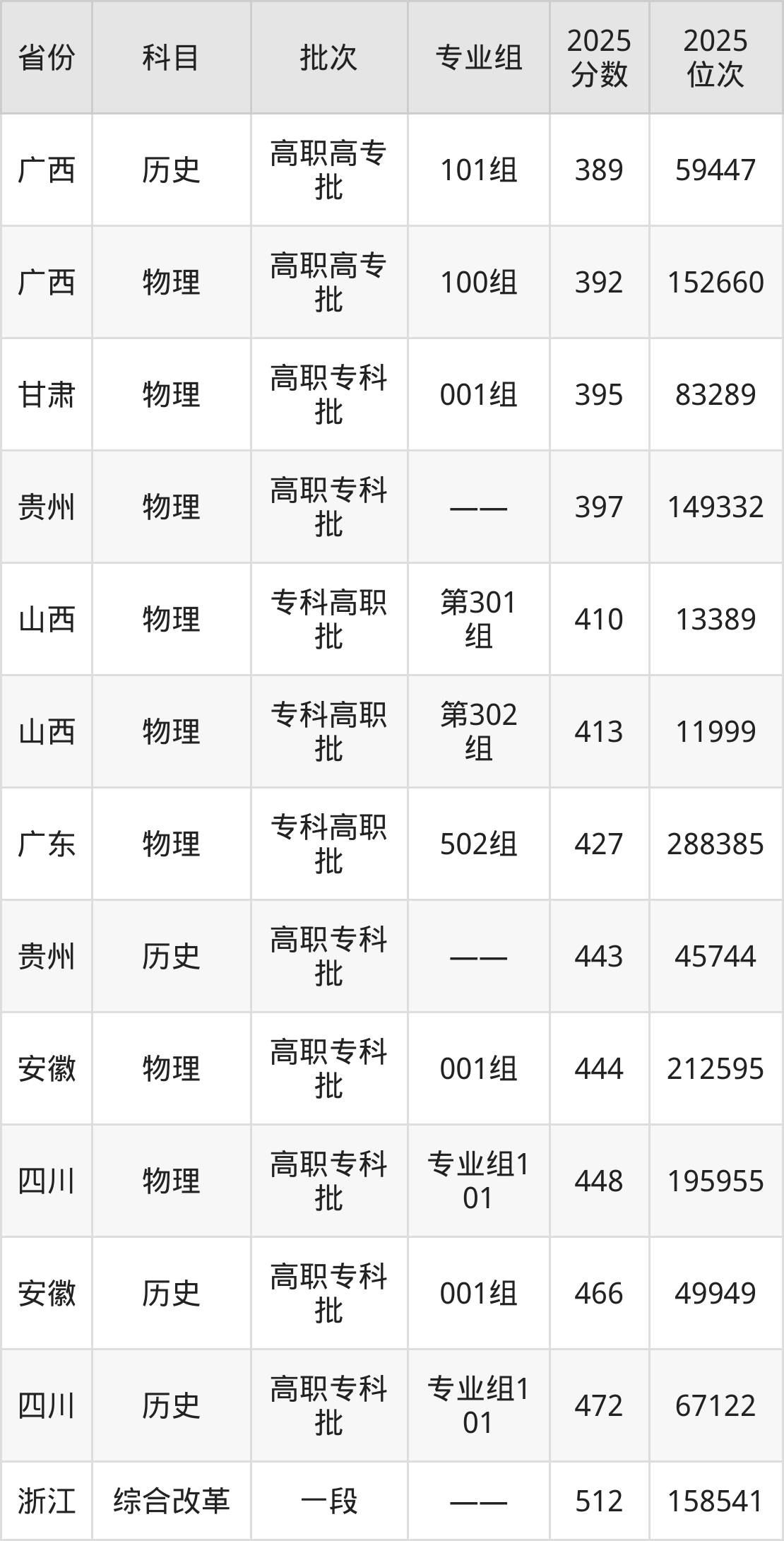 2025年福建电力职业技术学院在普通批次招生,录取分数线是389分-512分。
