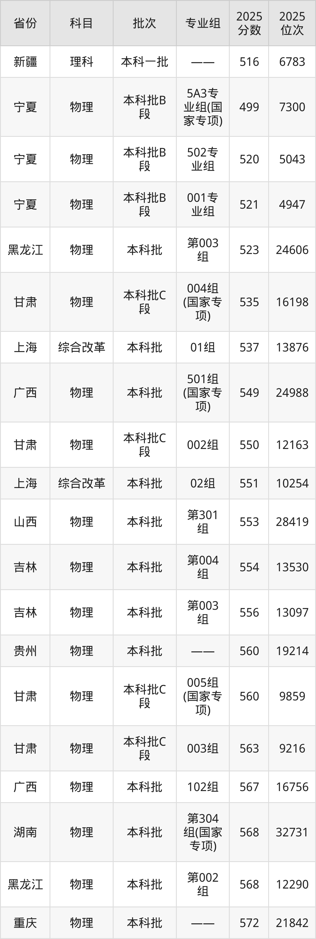 最低录取分数线是499分,对应位次是7300名,招生地区为宁夏;