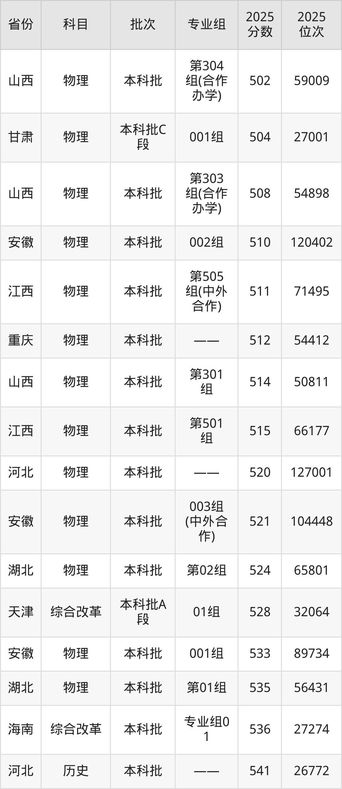 最高录取分数线是535分,对应位次是56431名,招生地区为湖北。