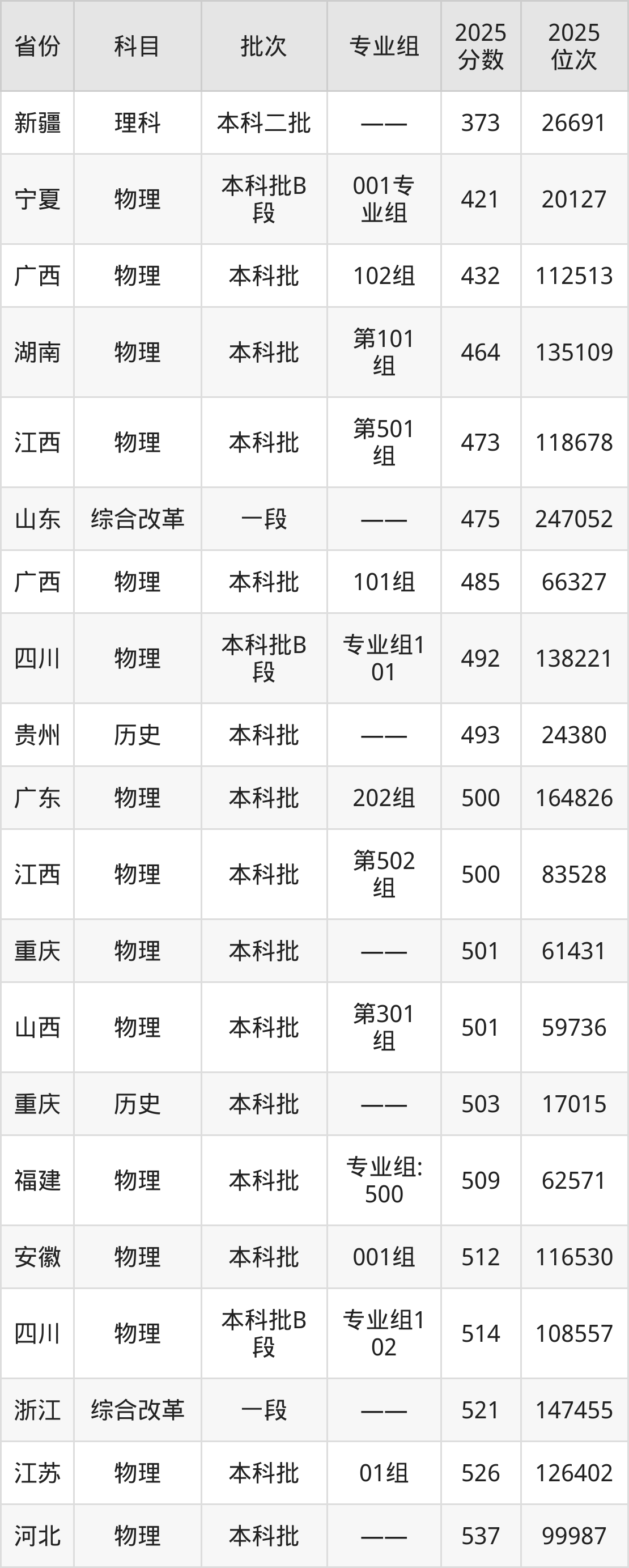最低录取分数线是373分,对应位次是26691名,招生地区为新疆;