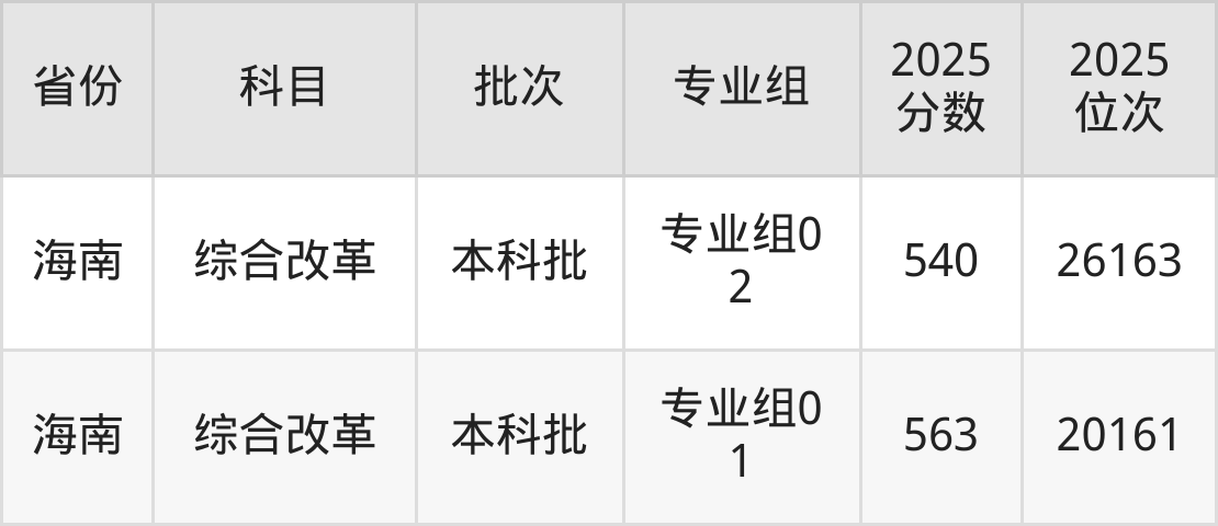 最高录取分数线是563分,对应位次是20161名,招生地区为海南。