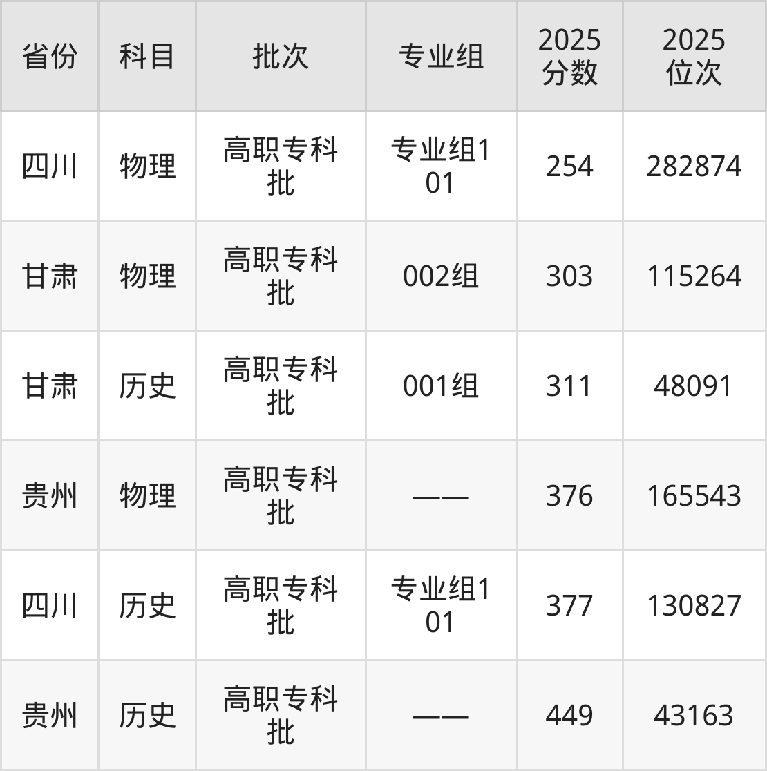 2025年阿坝职业学院在各省普通批录取分数线一览表: