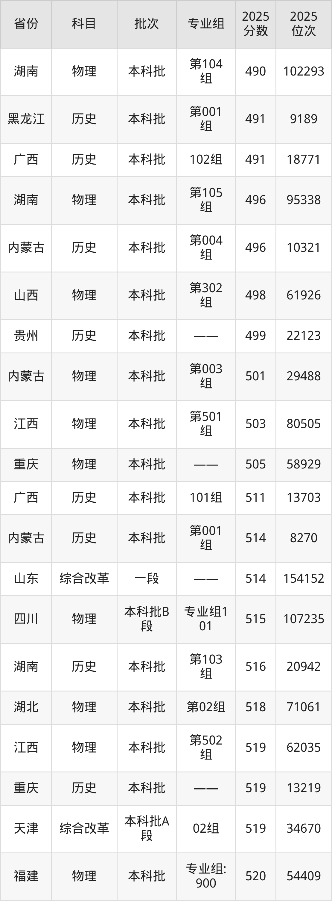 最低录取分数线是514分,对应位次是154152名,招生地区为山东;