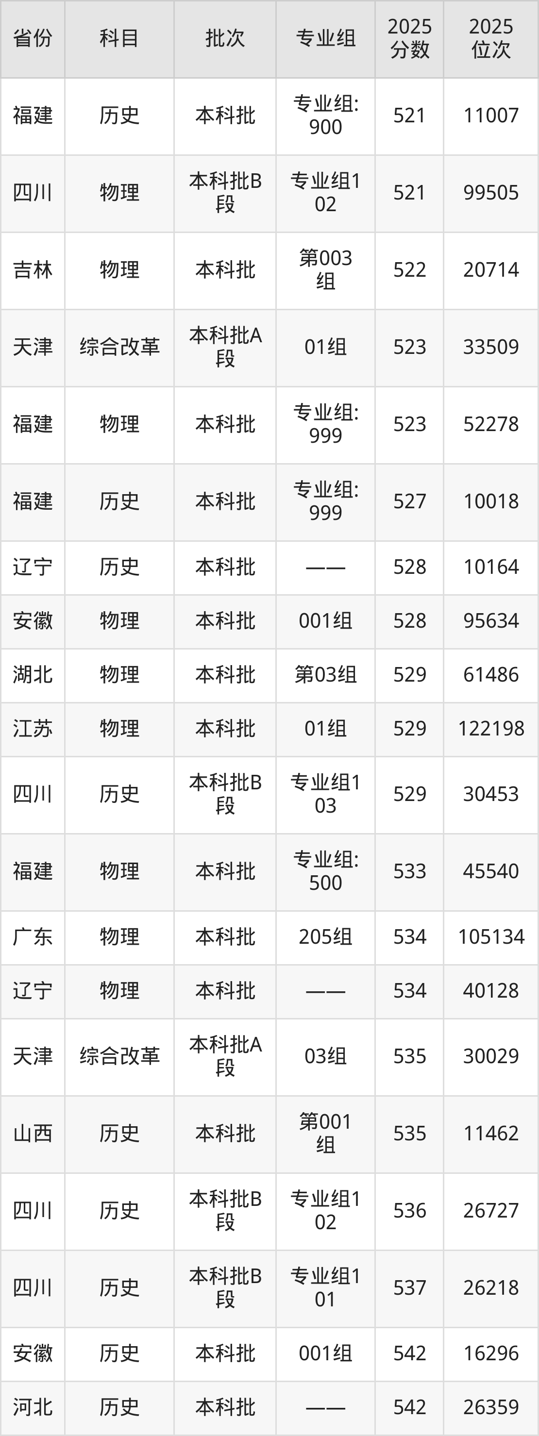 2025年闽江学院在各省物理类和理科的录取分数线位于387分-553分之间。