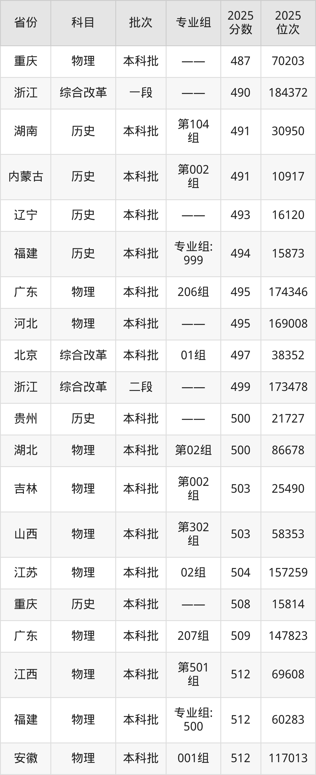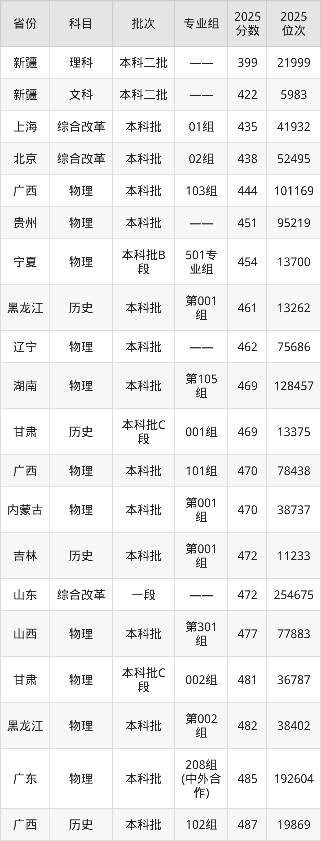 最低录取分数线是422分,对应位次是5983名,招生地区为新疆;