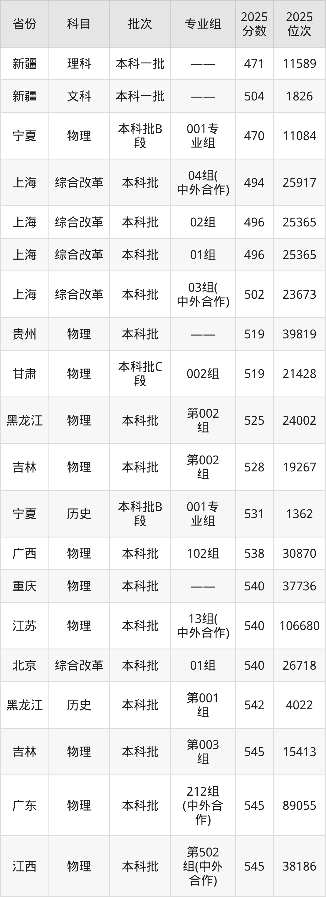 最低录取分数线是494分,对应位次是25917名,招生地区为上海;