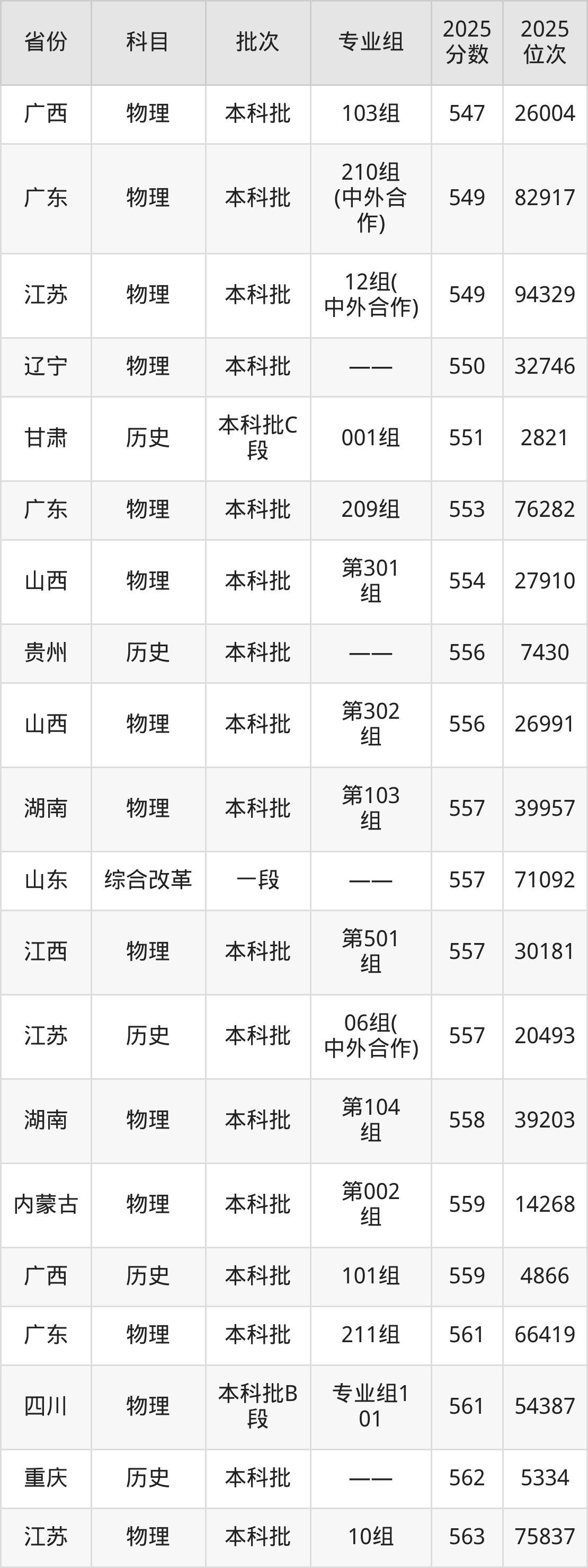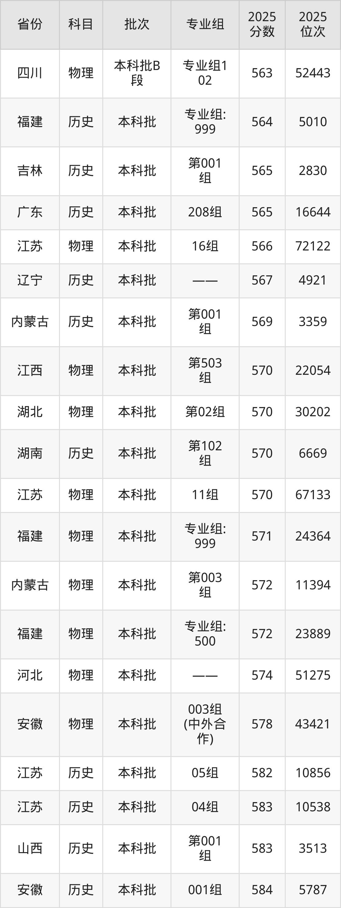 2025年南京财经大学在各省普通批录取分数线一览表: