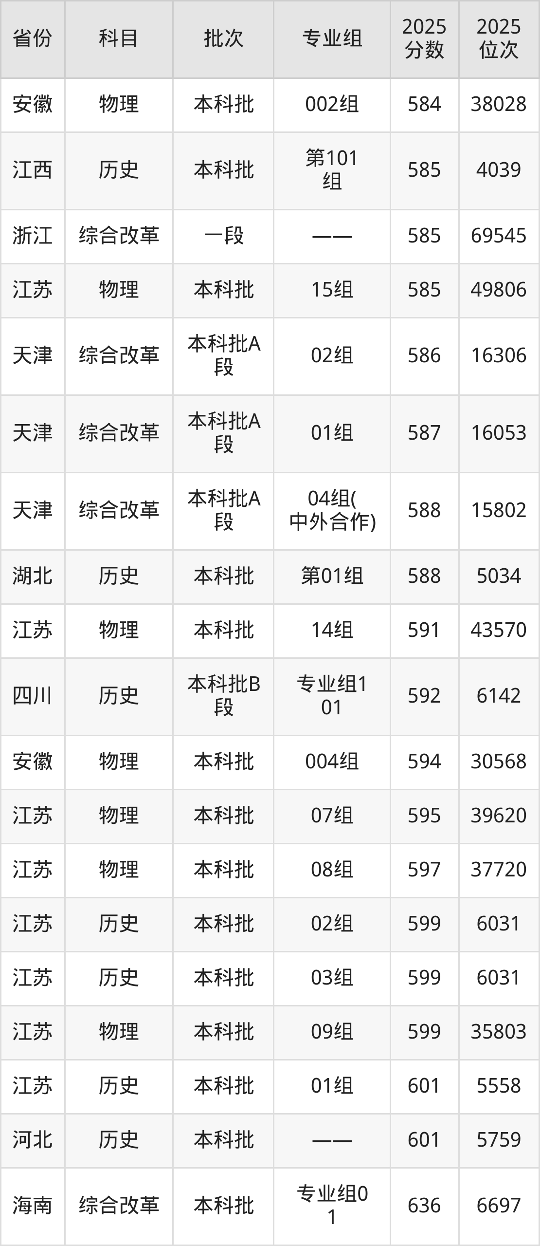 最高录取分数线是601分,对应位次是5558名,招生地区为江苏。