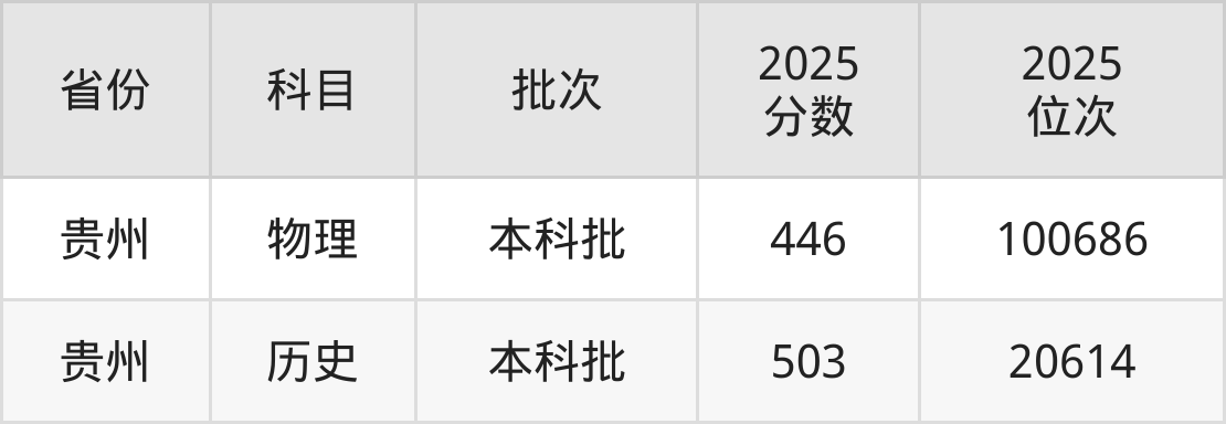 2025年贵州民族大学(预科班)在各省历史类的录取分数线为503分。
