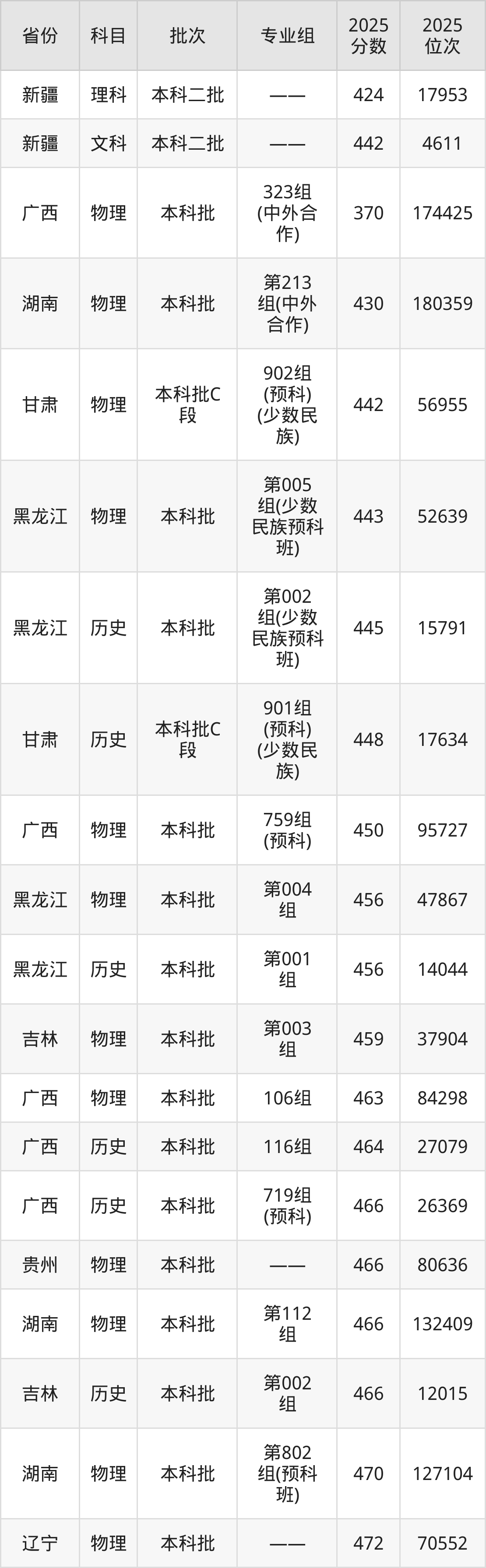 最低录取分数线是442分,对应位次是4611名,招生地区为新疆;