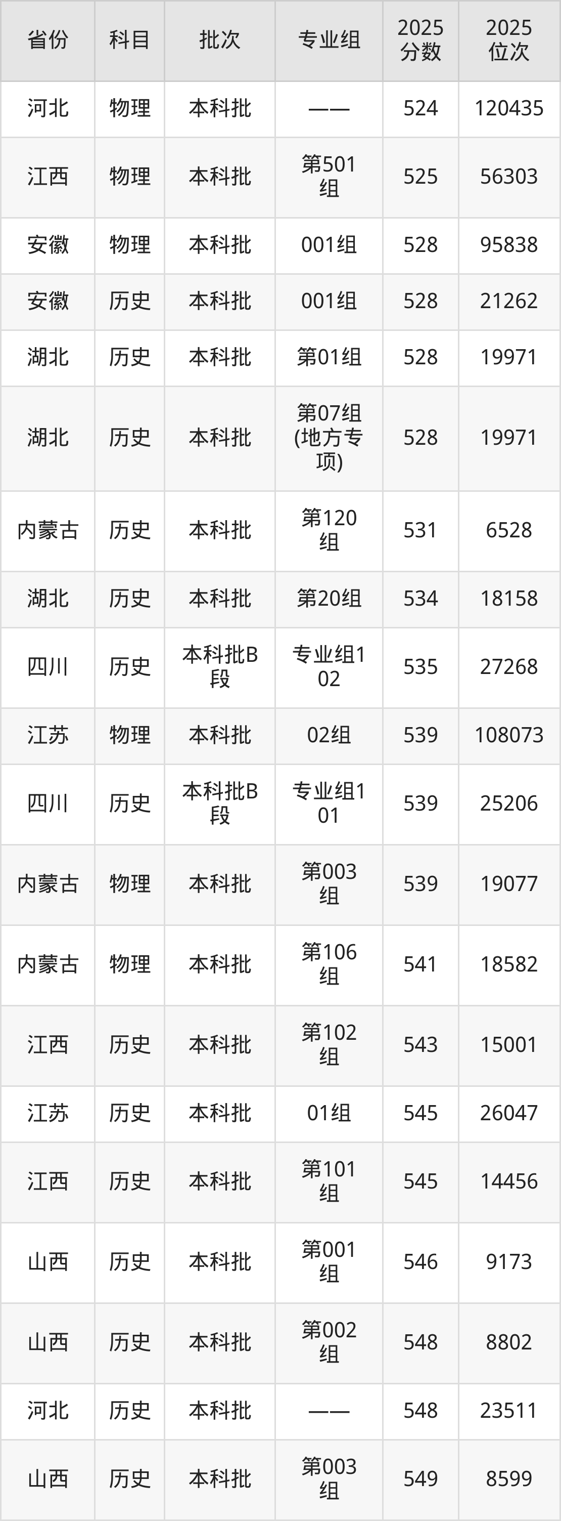 最高录取分数线是549分,对应位次是8599名,招生地区为山西。