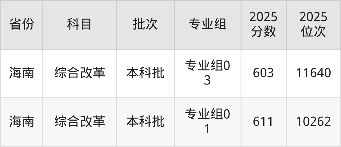 最高录取分数线是611分,对应位次是10262名,招生地区为海南。