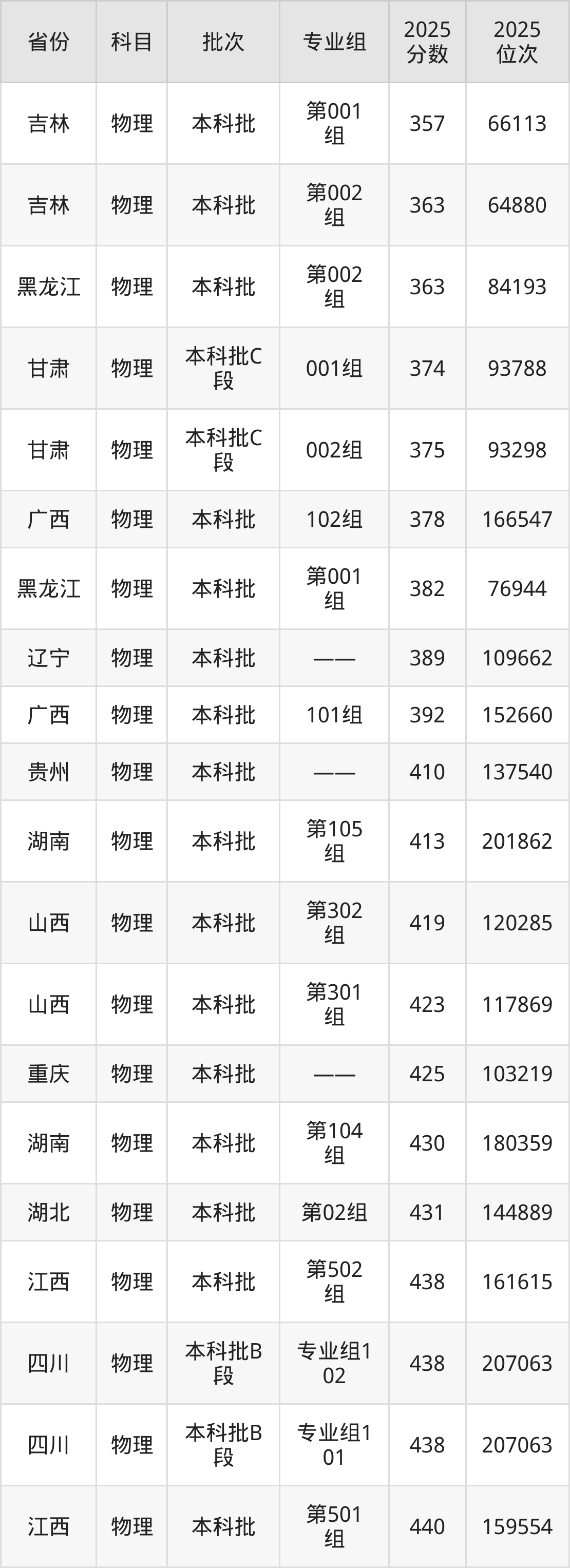 2025年厦门华厦学院在各省物理类的录取分数线位于357分-493分之间。