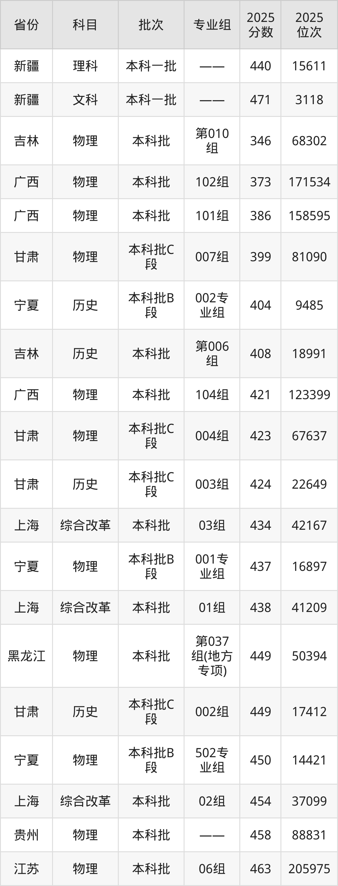 最低录取分数线是404分,对应位次是9485名,招生地区为宁夏;