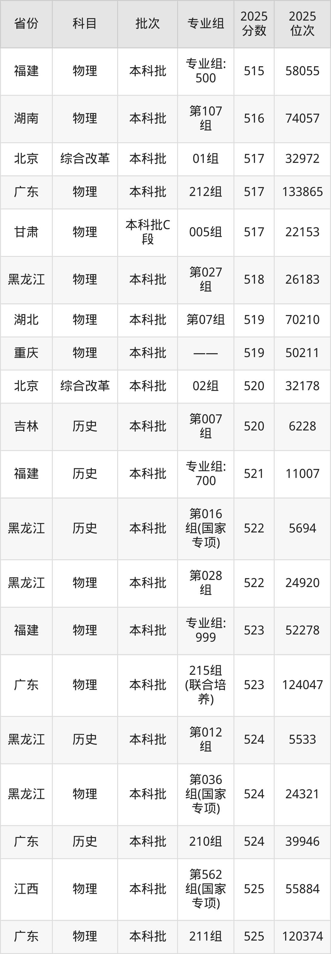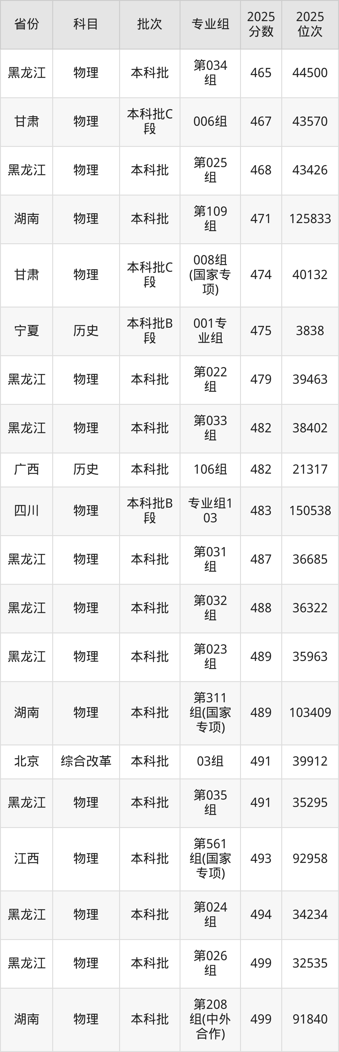 2025年黑龙江大学在各省普通批录取分数线一览表: