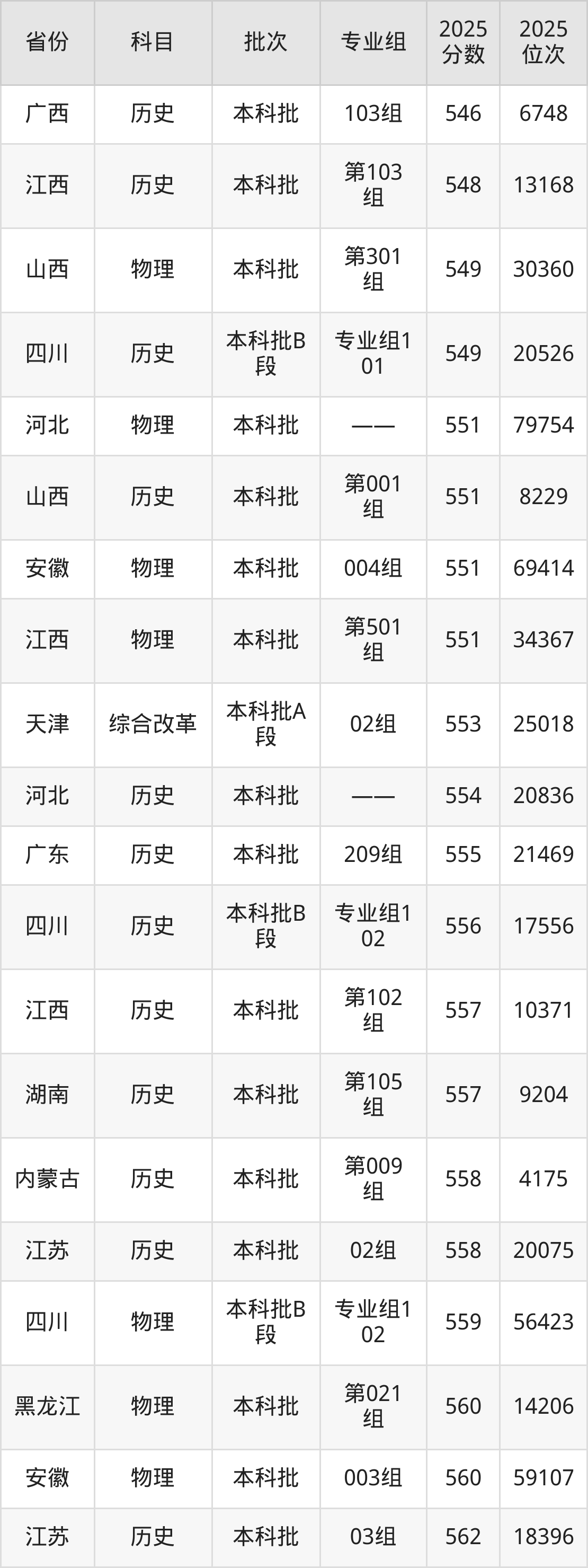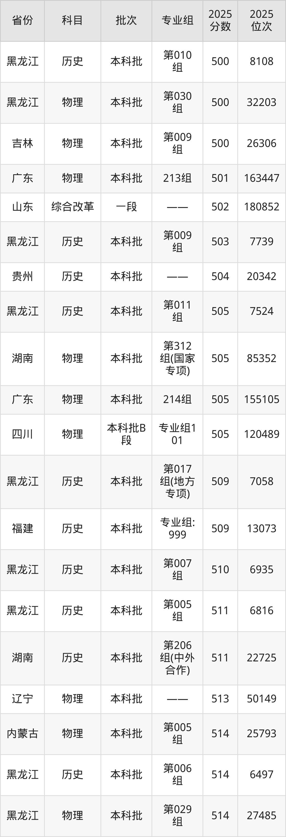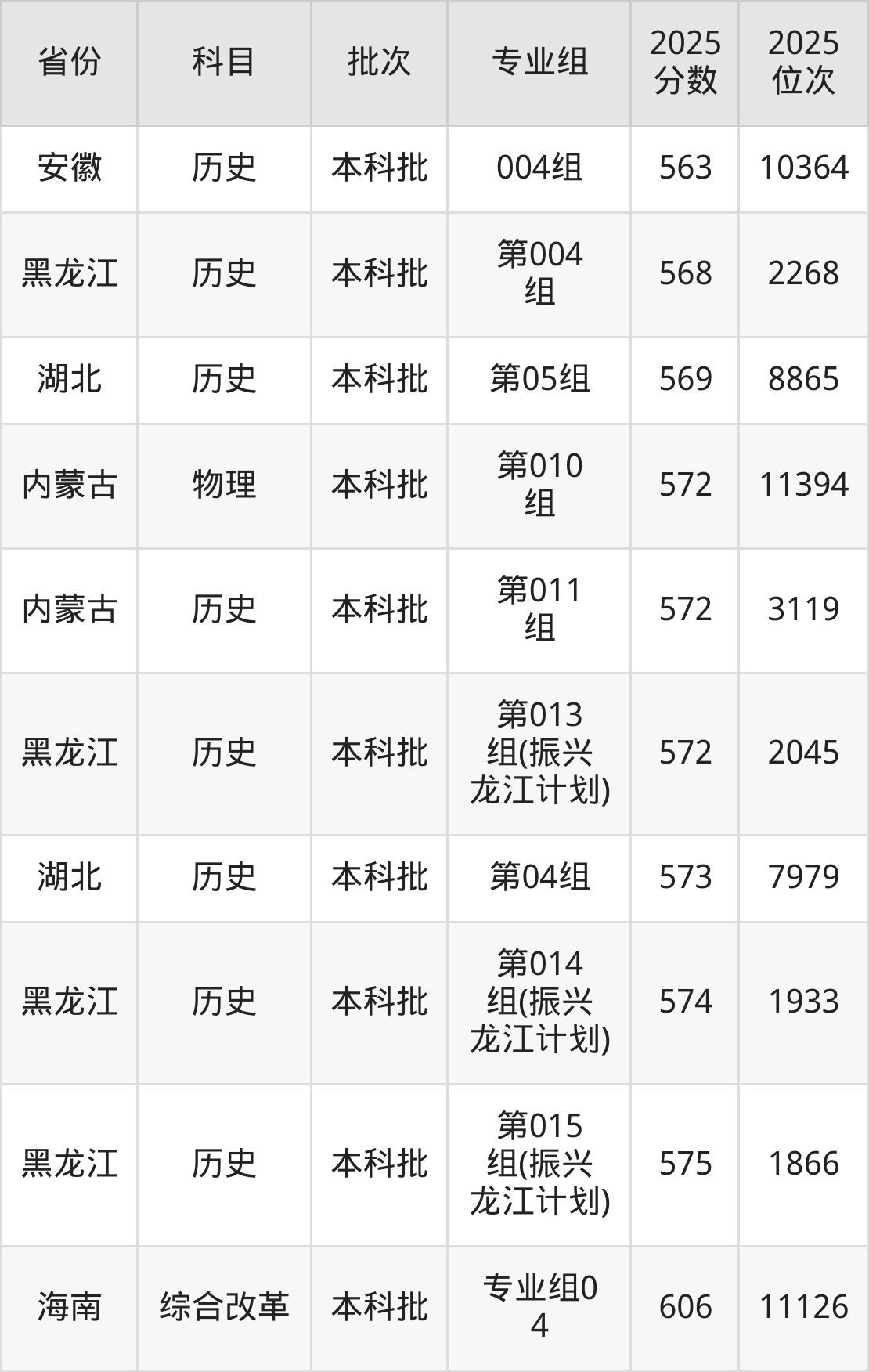 最高录取分数线是575分,对应位次是1866名,招生地区为黑龙江。