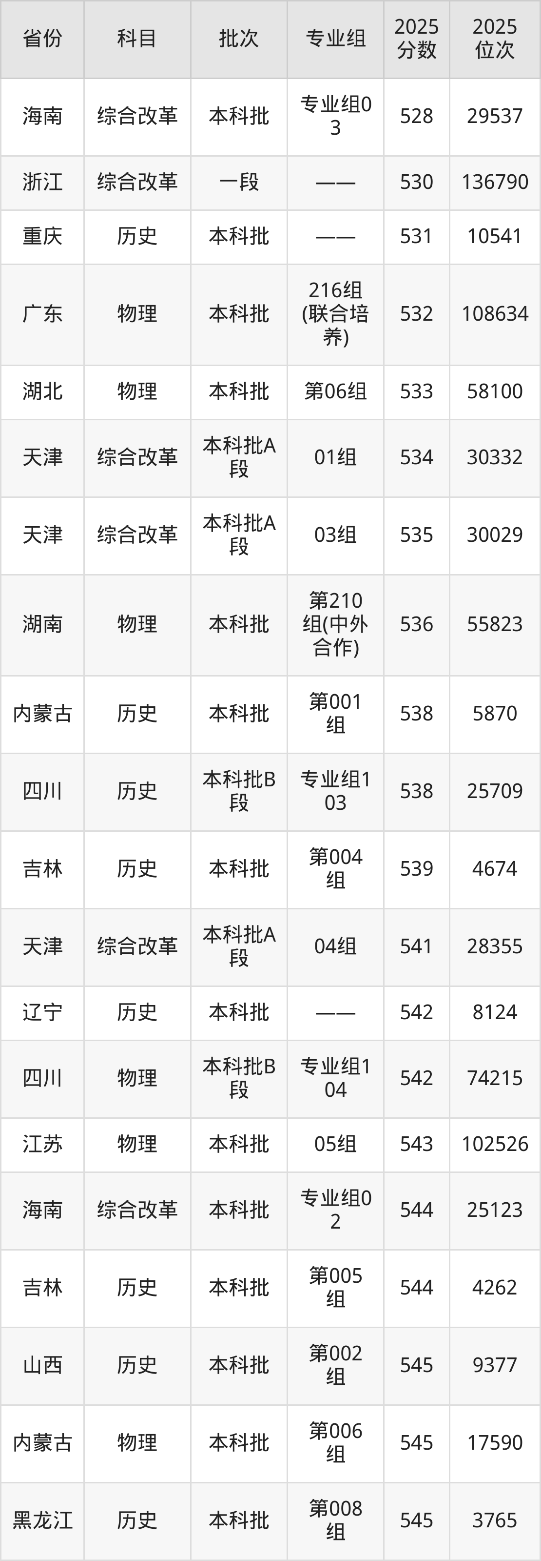 最高录取分数线是606分,对应位次是11126名,招生地区为海南。