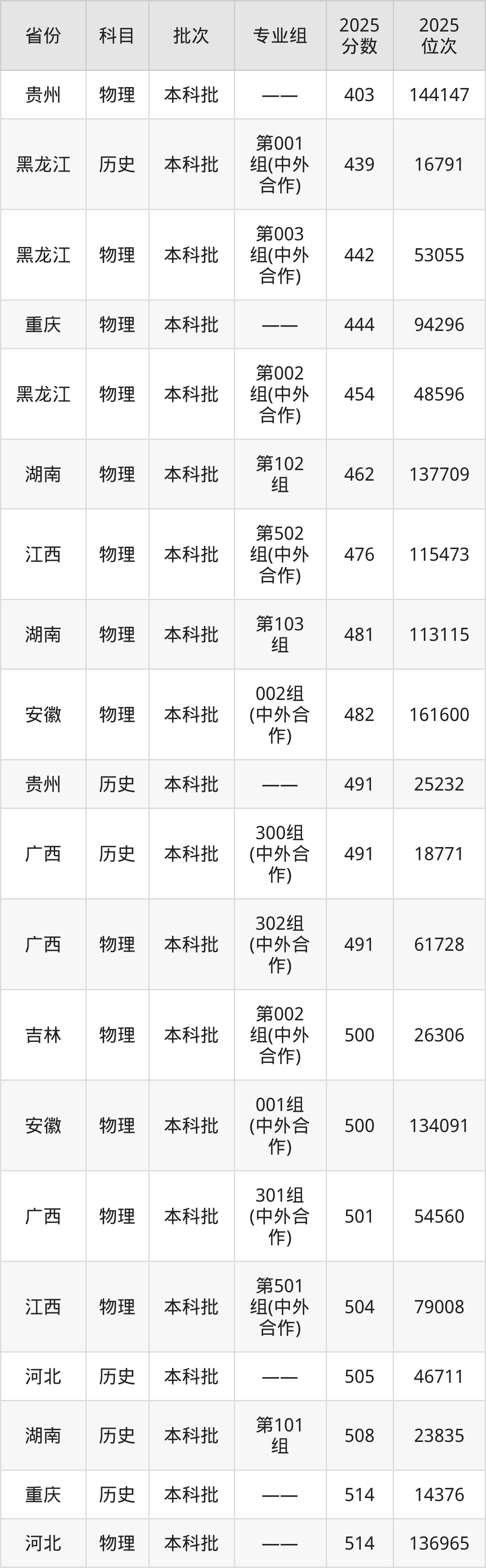 2025年温州肯恩大学在普通批次招生,录取分数线是403分-587分。