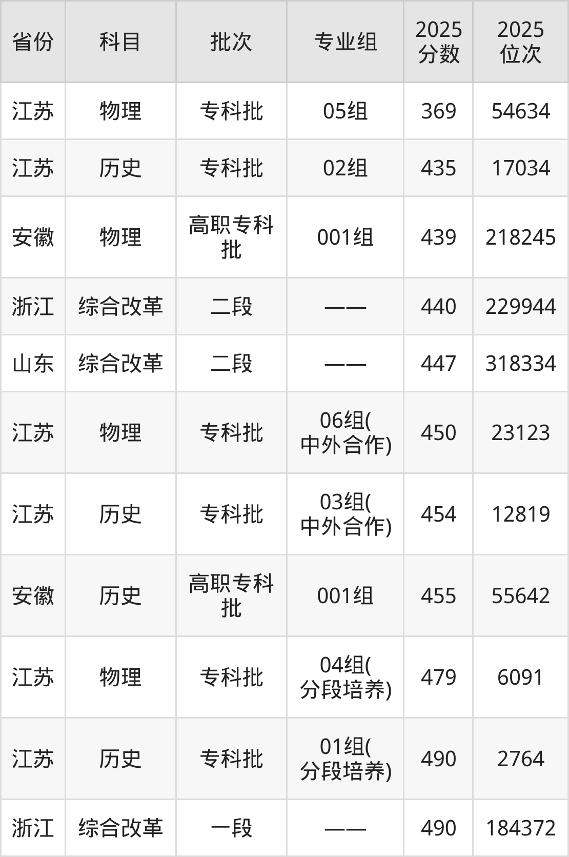 2025年无锡商业职业技术学院在各省普通批录取分数线一览表: