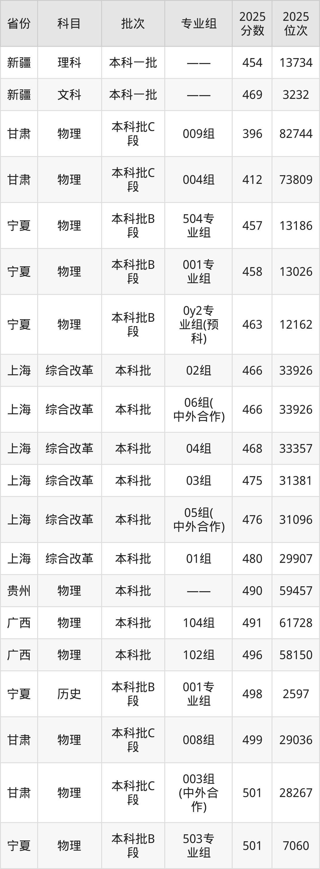 最低录取分数线是466分,对应位次是33926名,招生地区为上海;