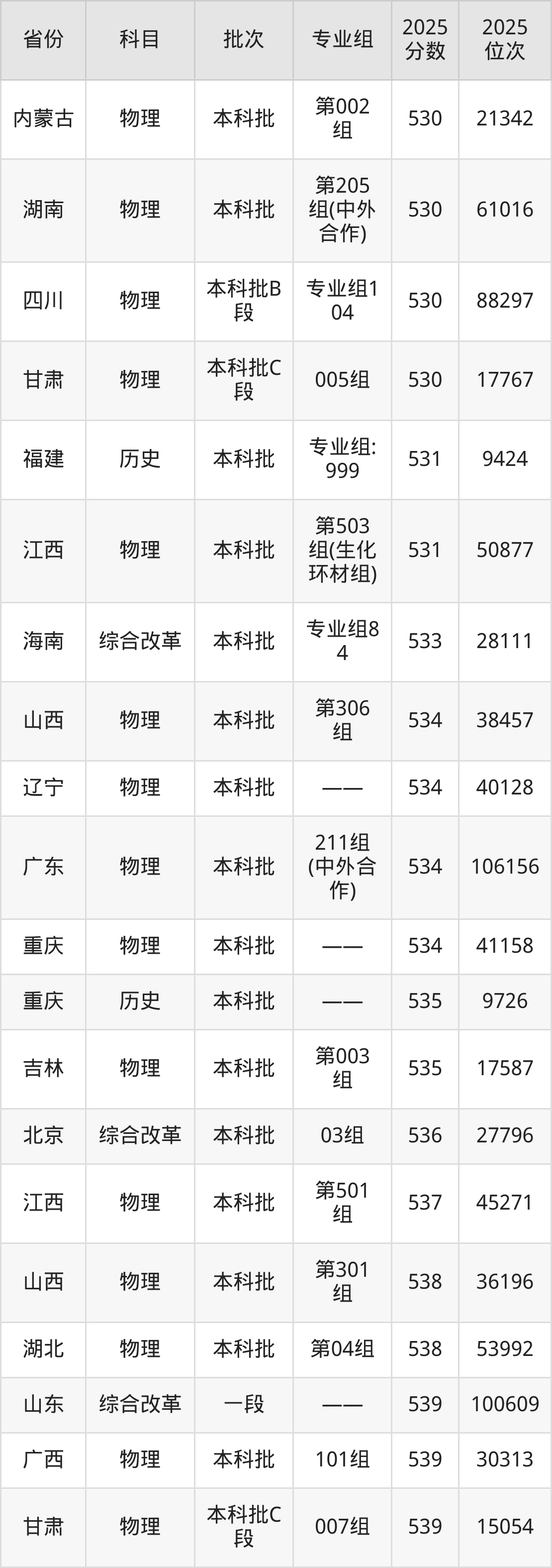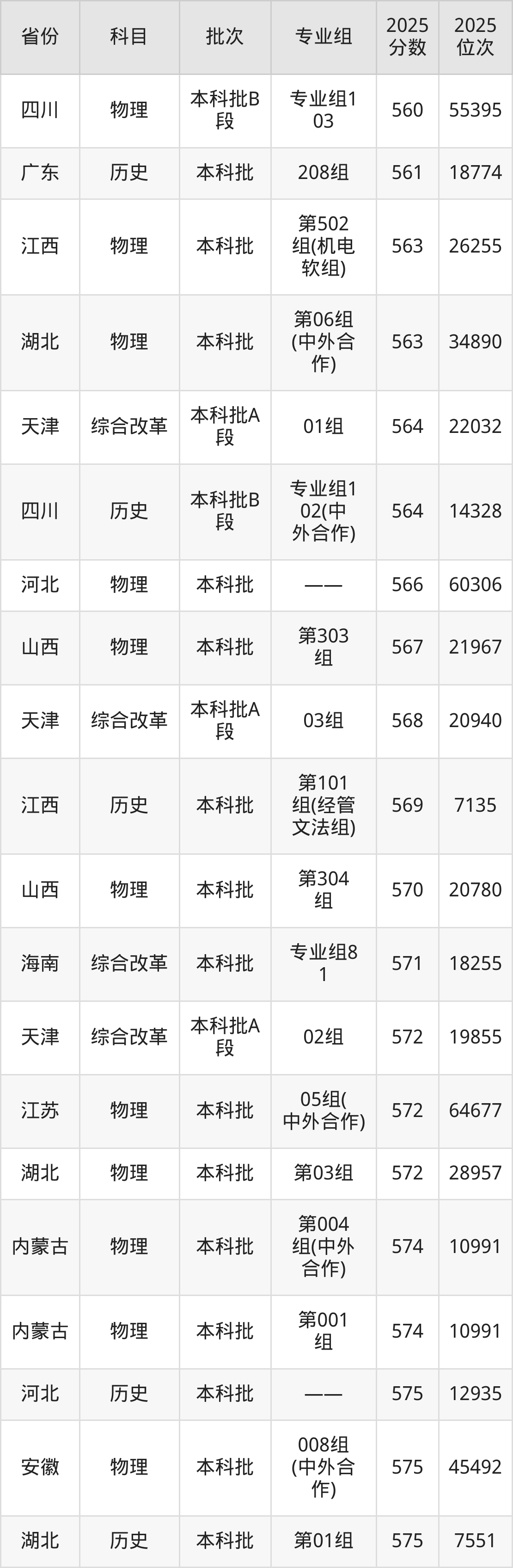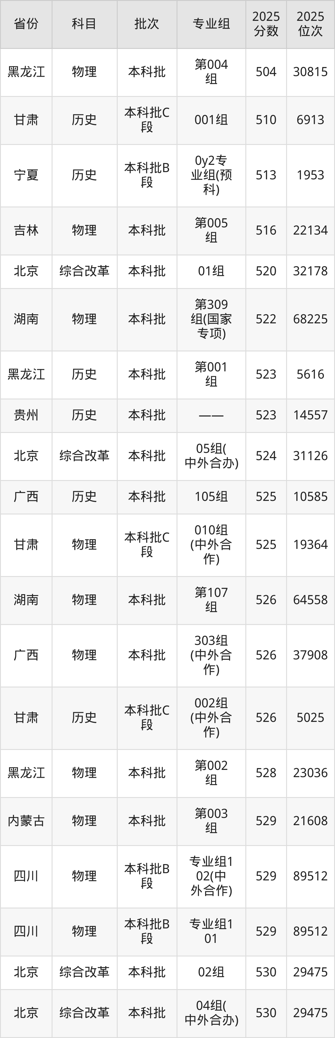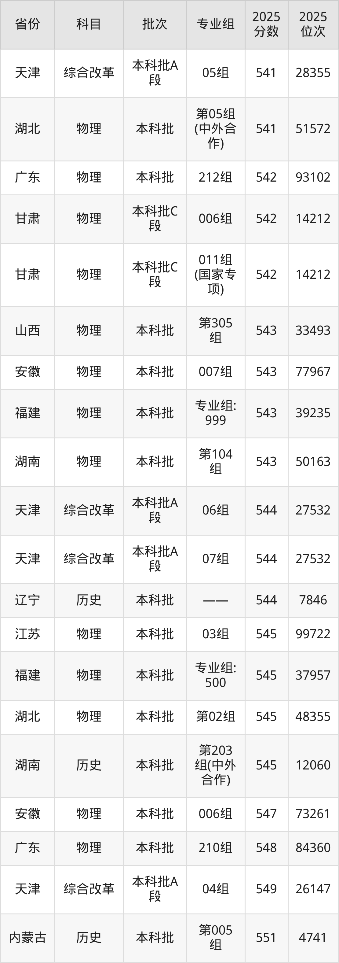 2025年天津科技大学在各省普通批录取分数线一览表: