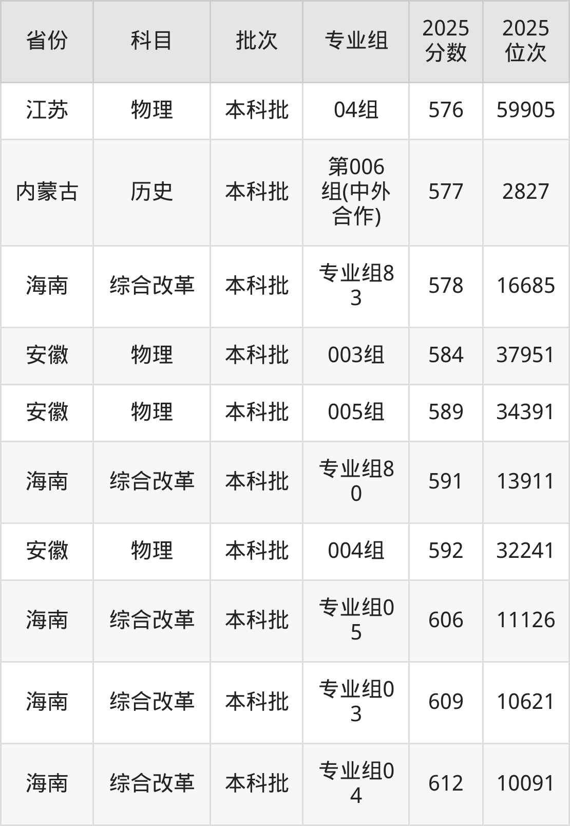 最高录取分数线是612分,对应位次是10091名,招生地区为海南。