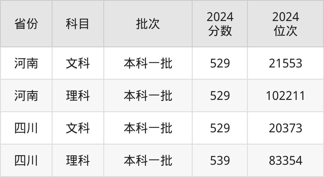 最高录取分数线是539分,对应位次是83354名,招生地区为四川。