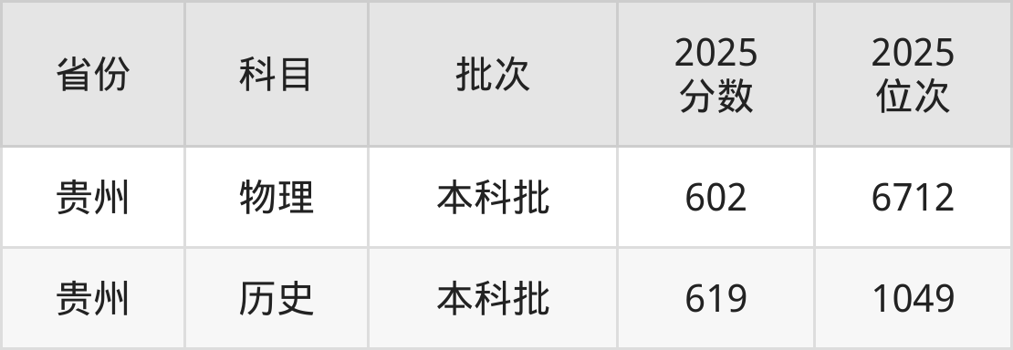 最低录取分数线是602分,对应位次是6712名,招生地区为贵州。
