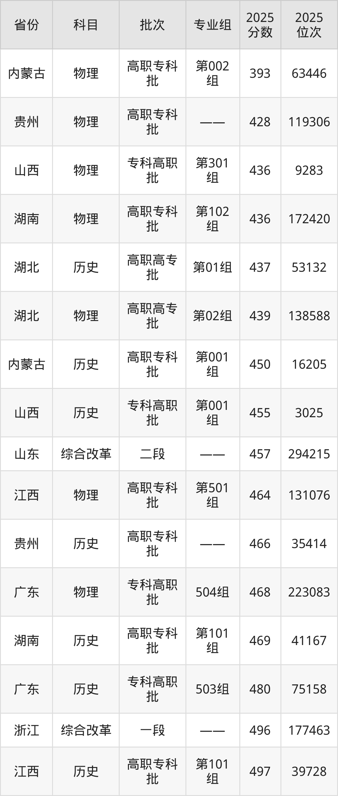 2025年长沙电力职业技术学院在各省物理类的录取分数线位于393分-468分之间。
