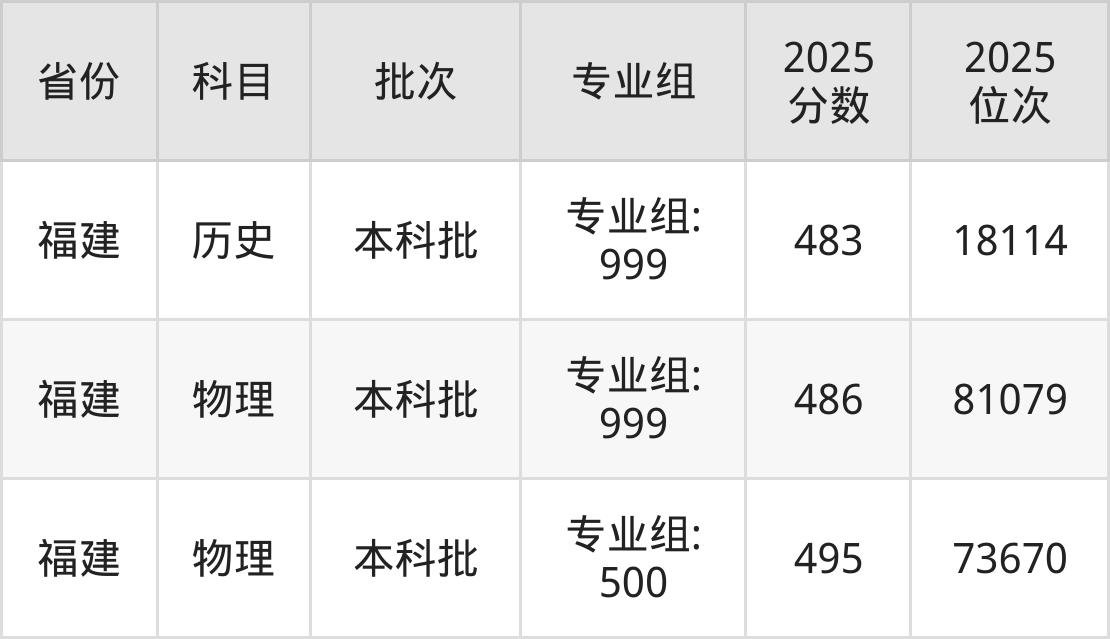 最低录取分数线是483分,对应位次是18114名,招生地区为福建。