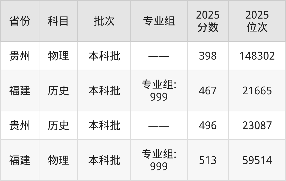 最低录取分数线是398分,对应位次是148302名,招生地区为贵州;