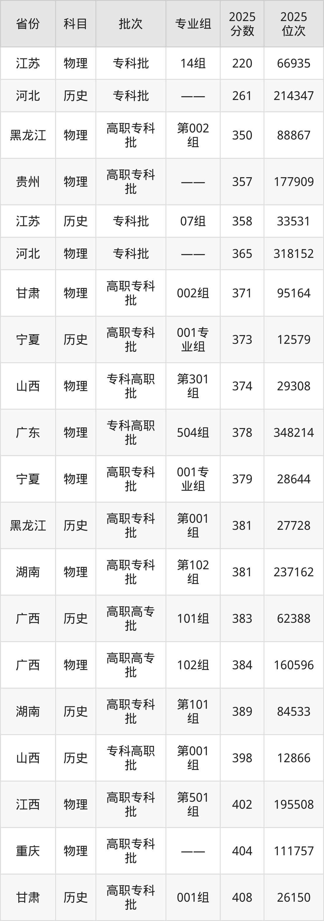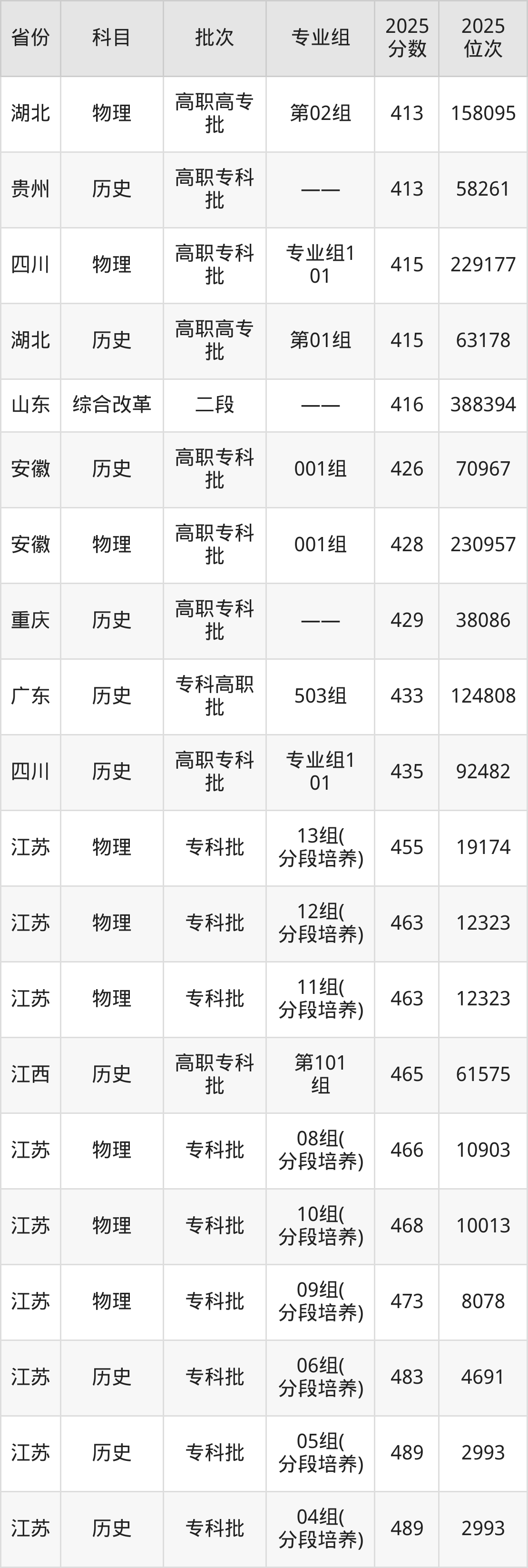 2025年江苏商贸职业学院在各省普通批录取分数线一览表: