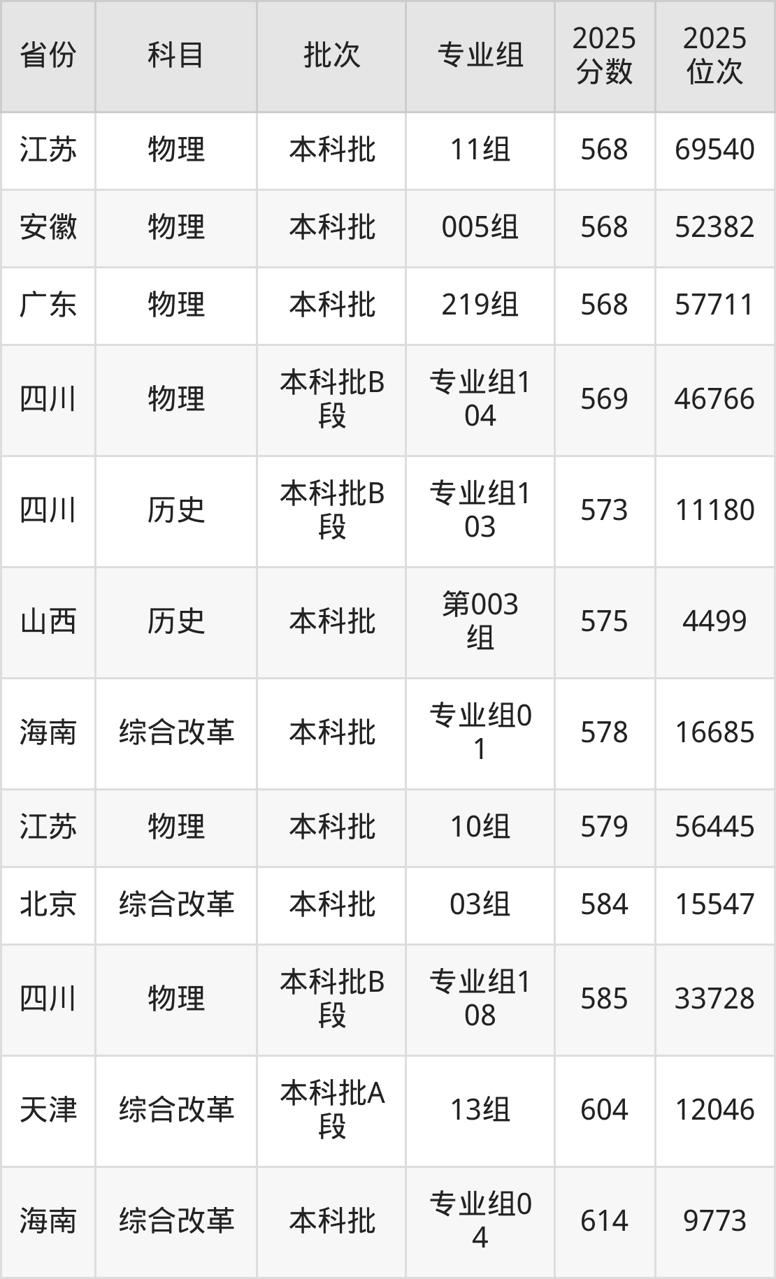 最高录取分数线是614分,对应位次是9773名,招生地区为海南。