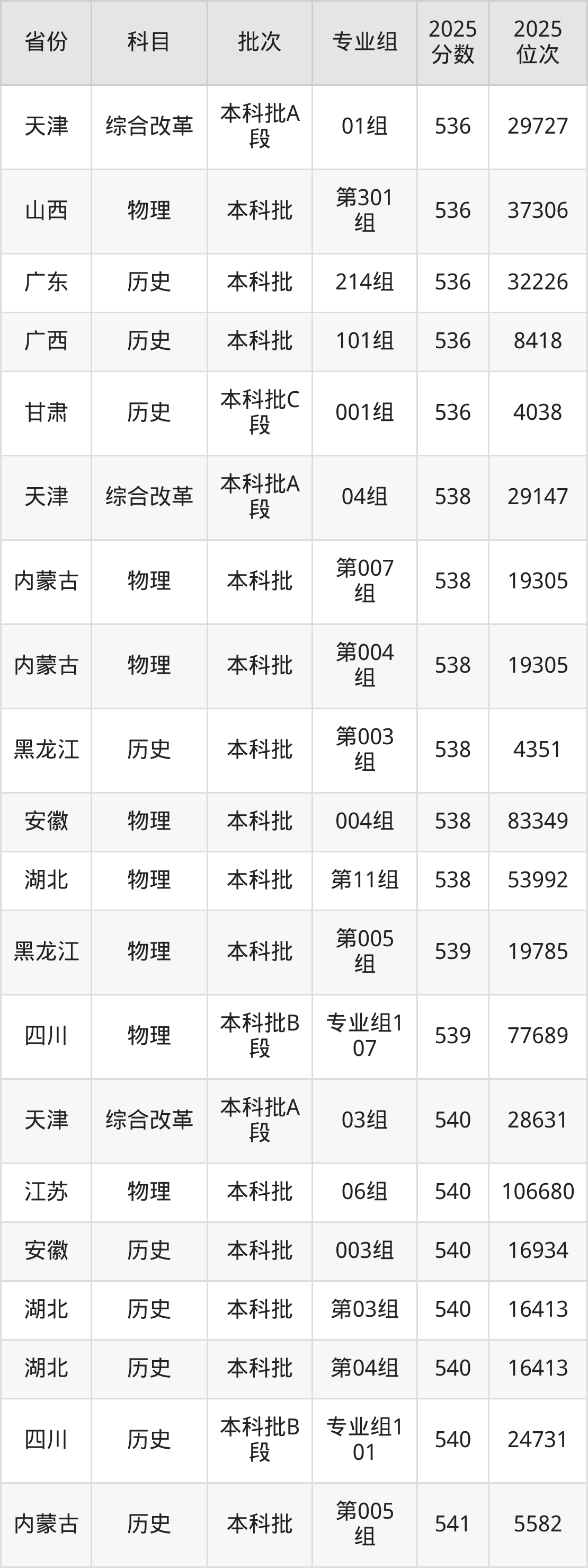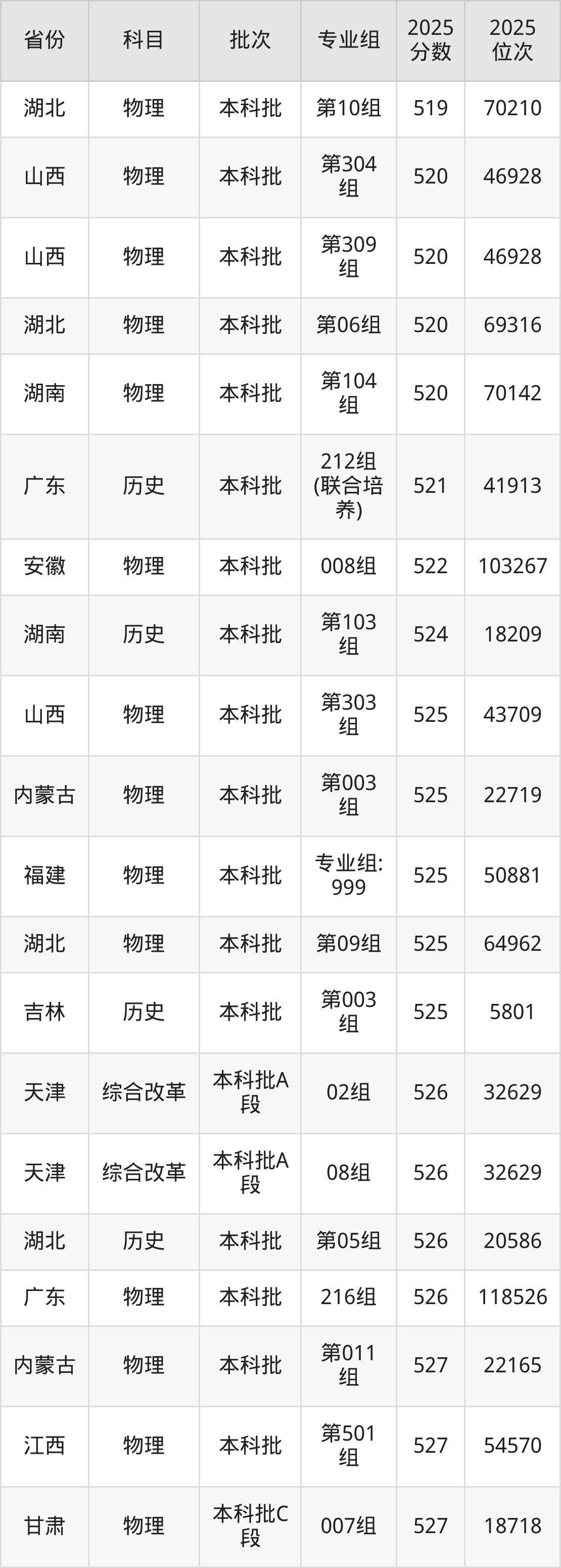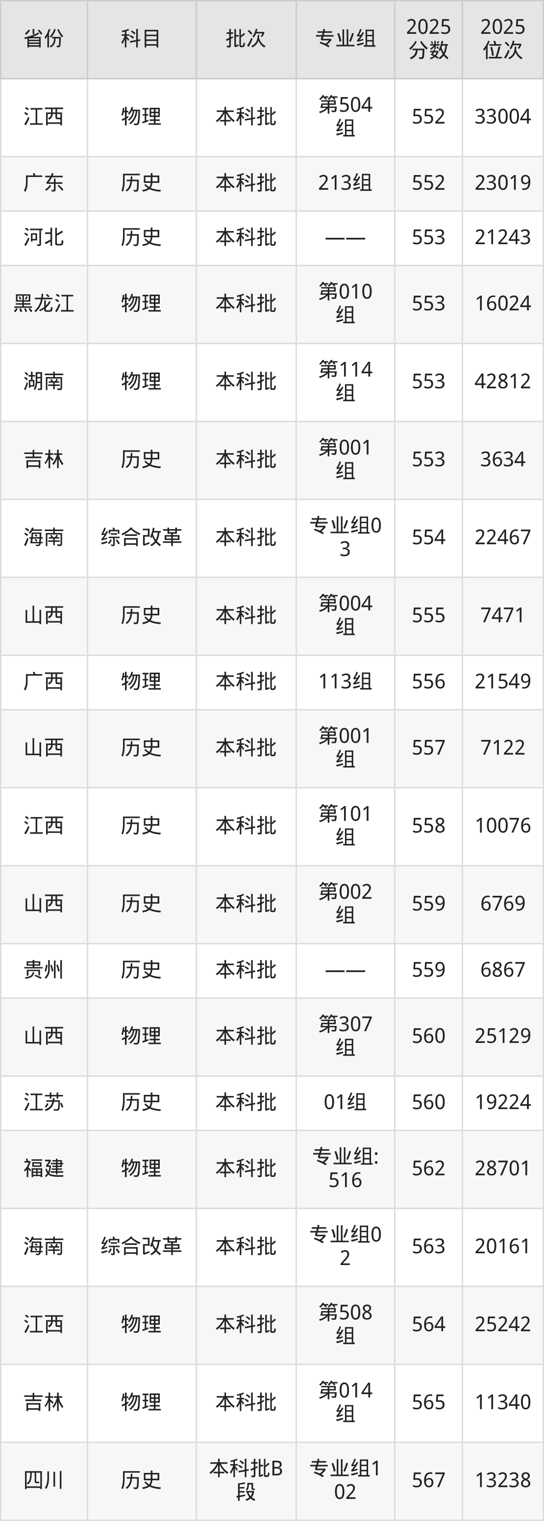 最高录取分数线是575分,对应位次是4499名,招生地区为山西。