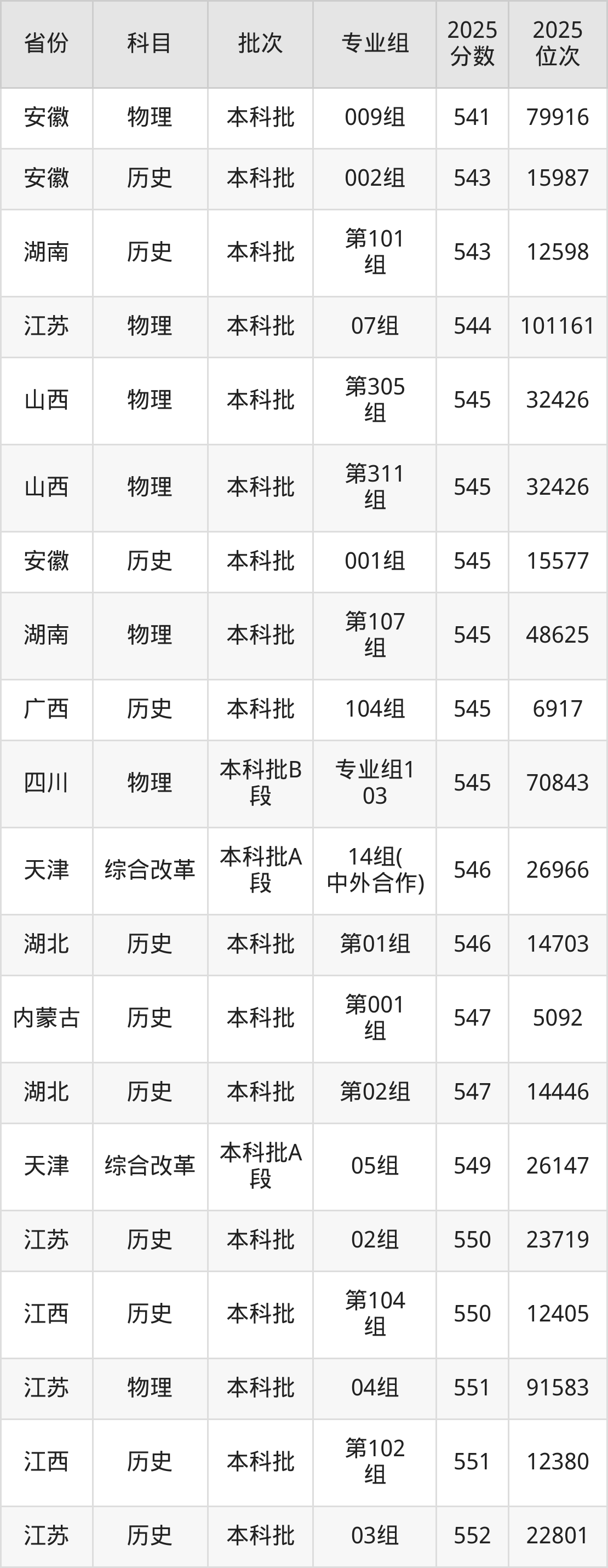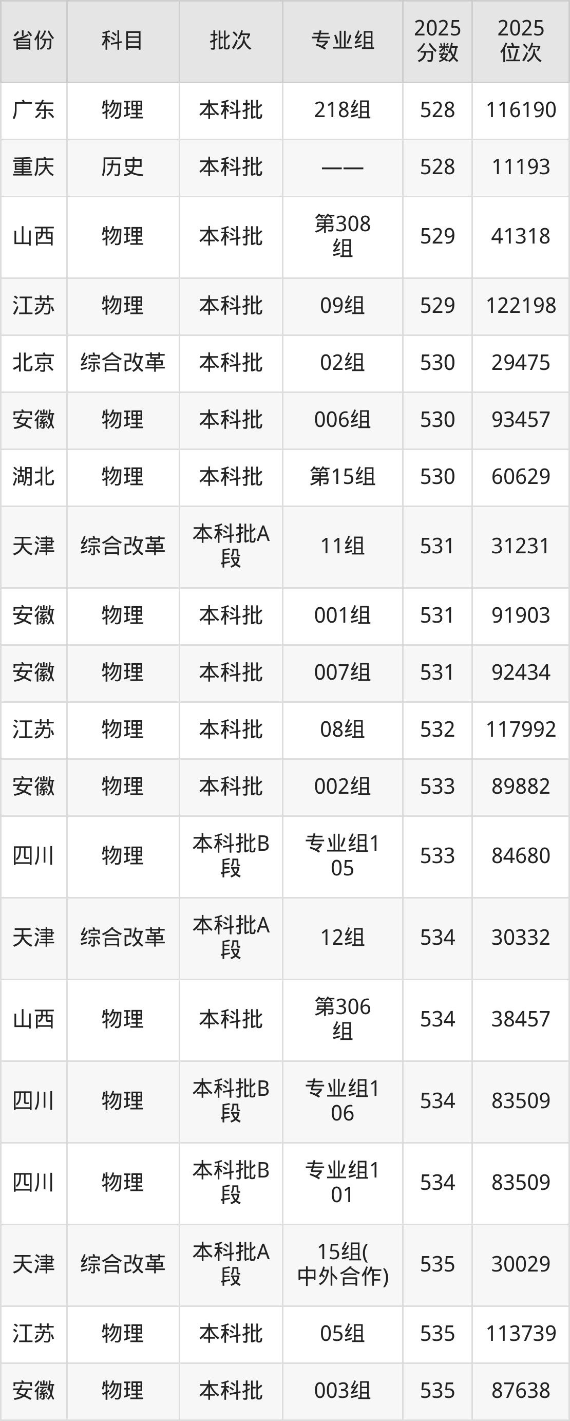2025年华北理工大学在各省普通批录取分数线一览表:
