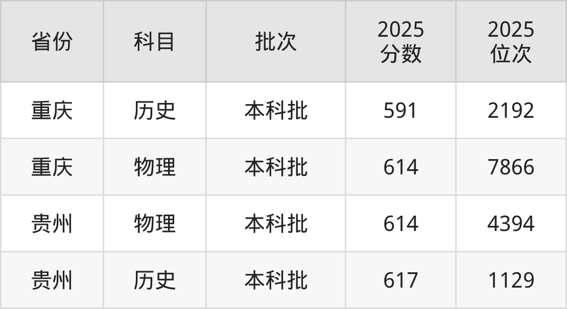 最低录取分数线是614分,对应位次是7866名,招生地区为重庆。