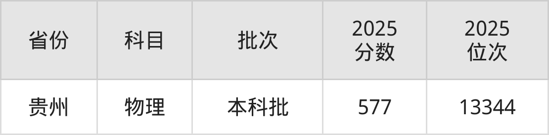 最低录取分数线是577分,对应位次是13344名,招生地区为贵州。
