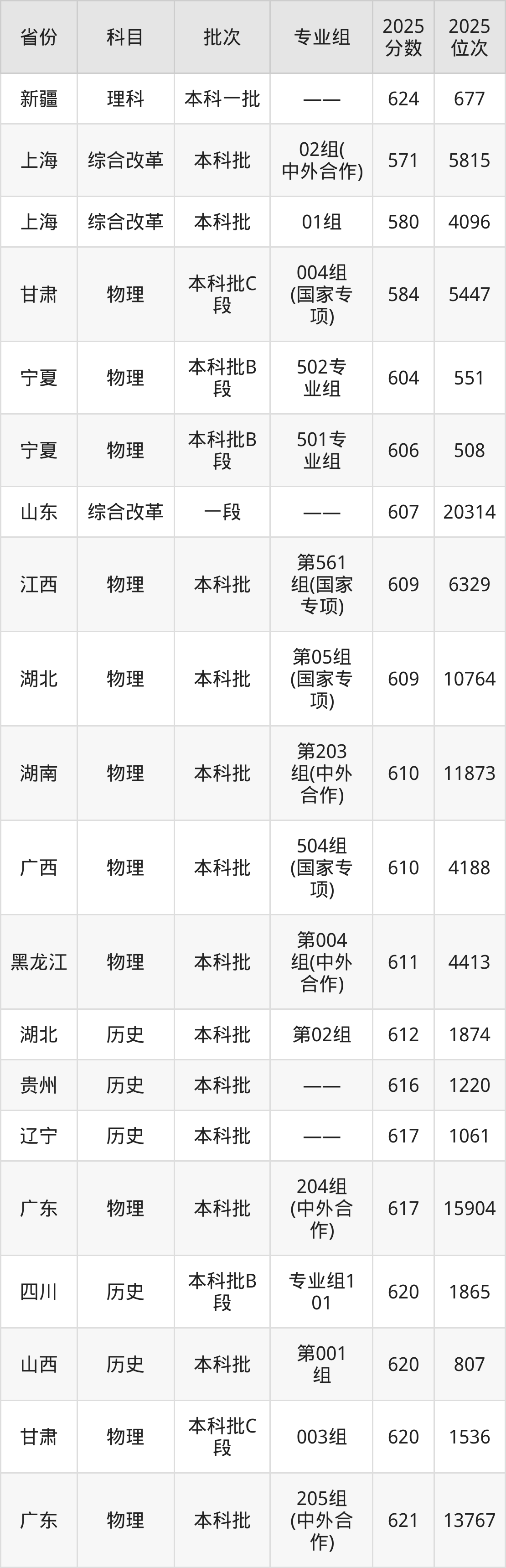 2025年哈尔滨工业大学(威海)在各省历史类的录取分数线位于612分-629分之间。