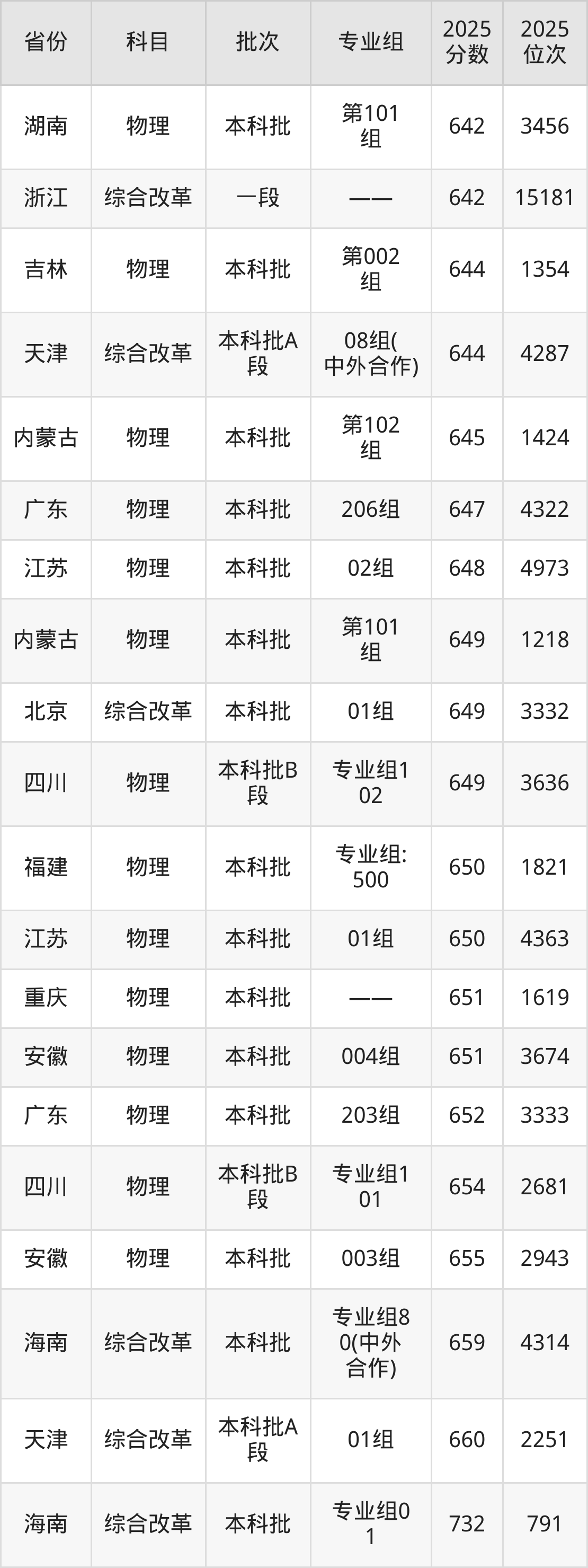 最高录取分数线是655分,对应位次是2943名,招生地区为安徽。