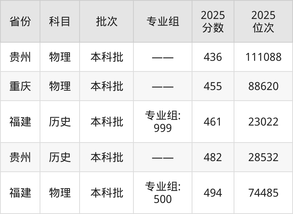 最高录取分数线是482分,对应位次是28532名,招生地区为贵州。