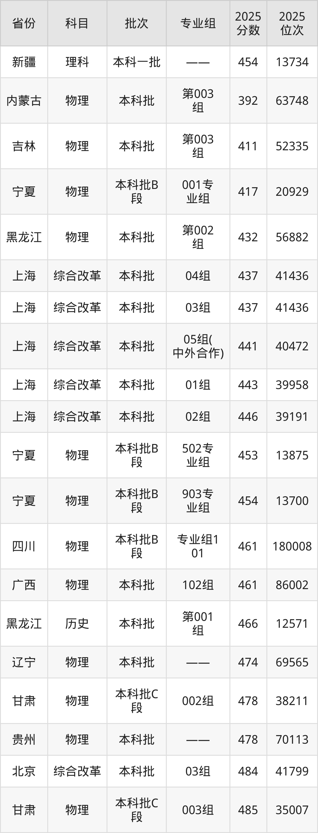 最低录取分数线是466分,对应位次是12571名,招生地区为黑龙江;