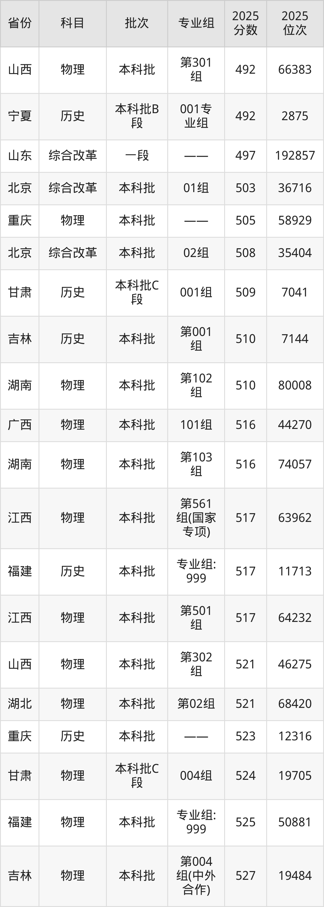 最高录取分数线是580分,对应位次是3874名,招生地区为山西。