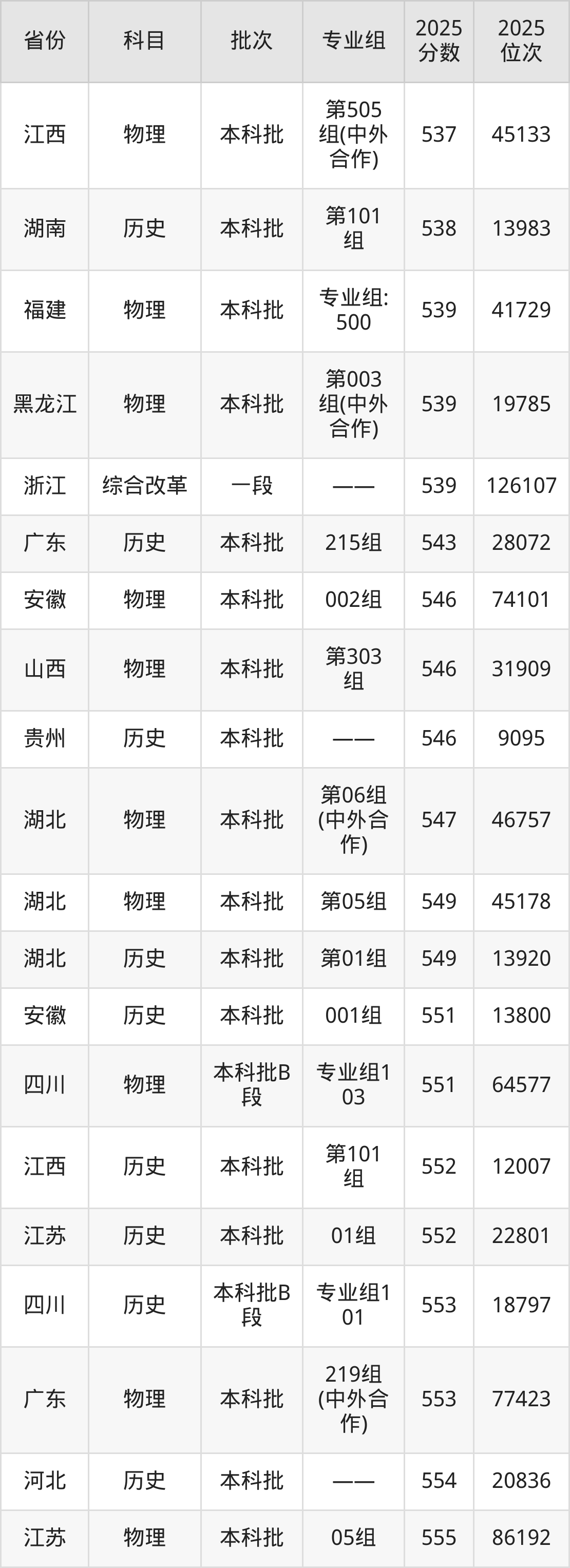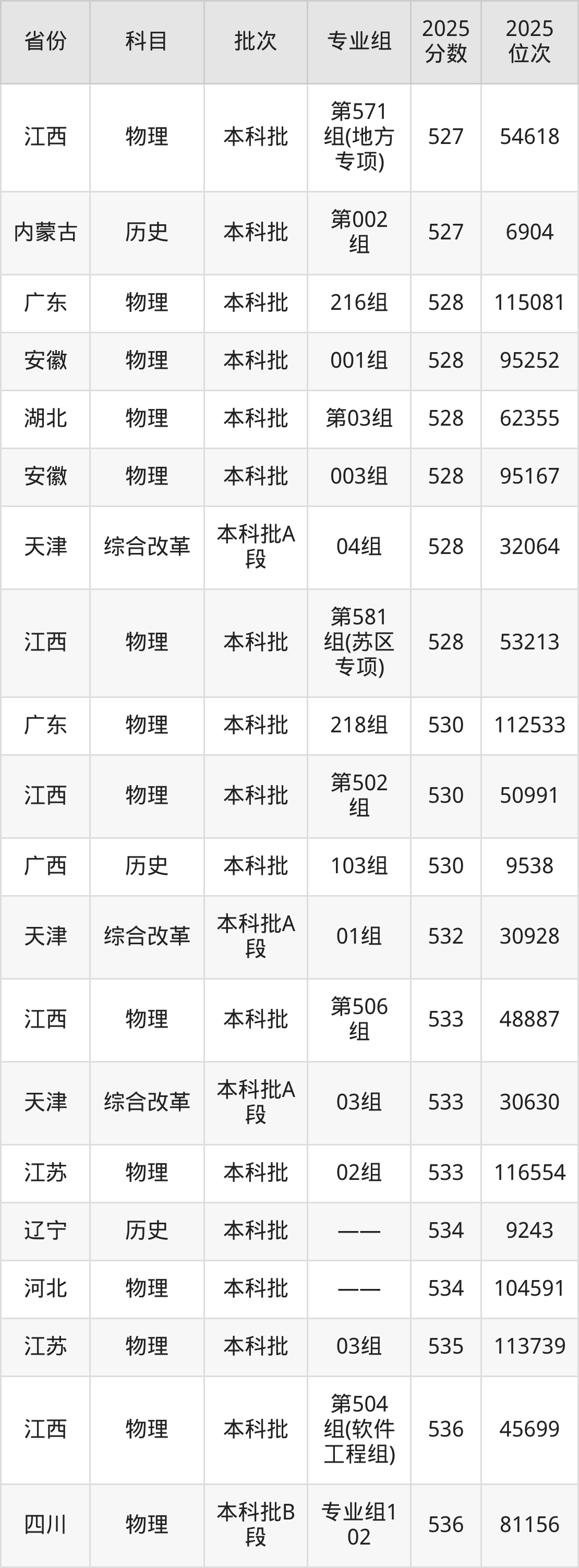 2025年江西理工大学在各省普通批录取分数线一览表: