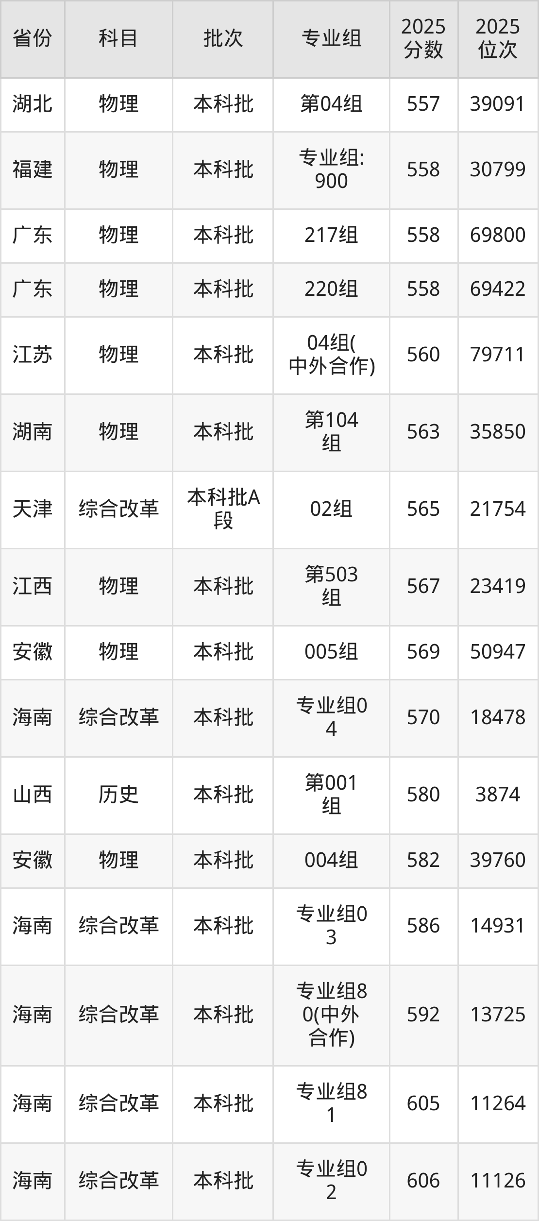 最高录取分数线是606分,对应位次是11126名,招生地区为海南。