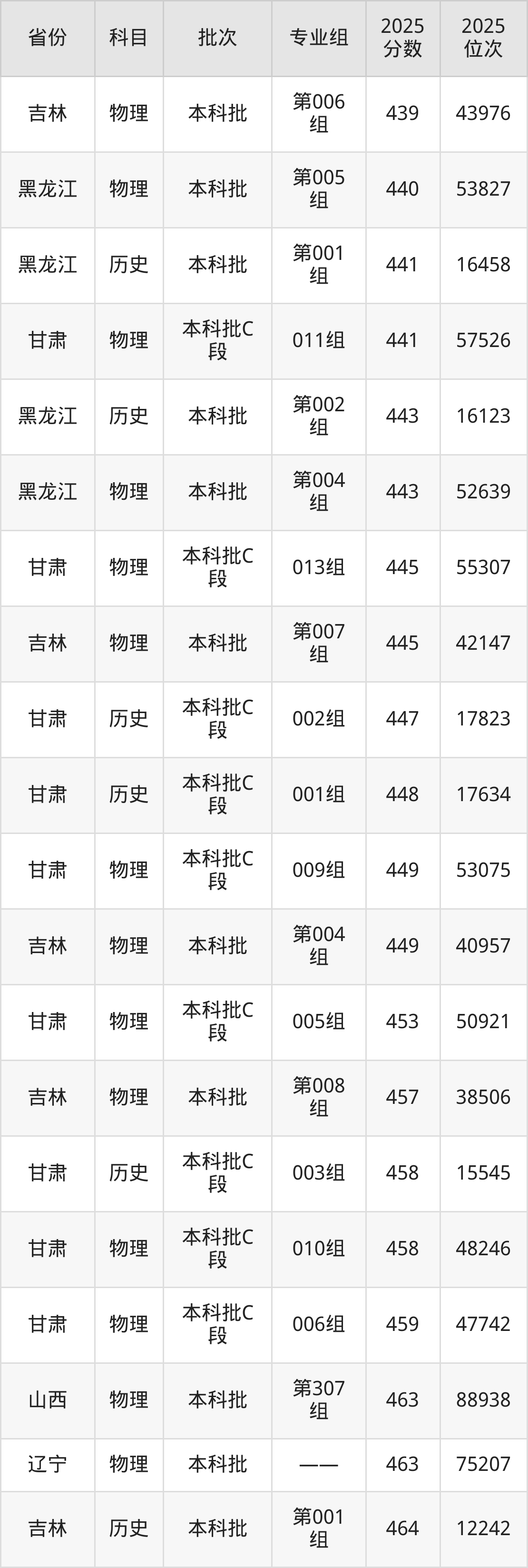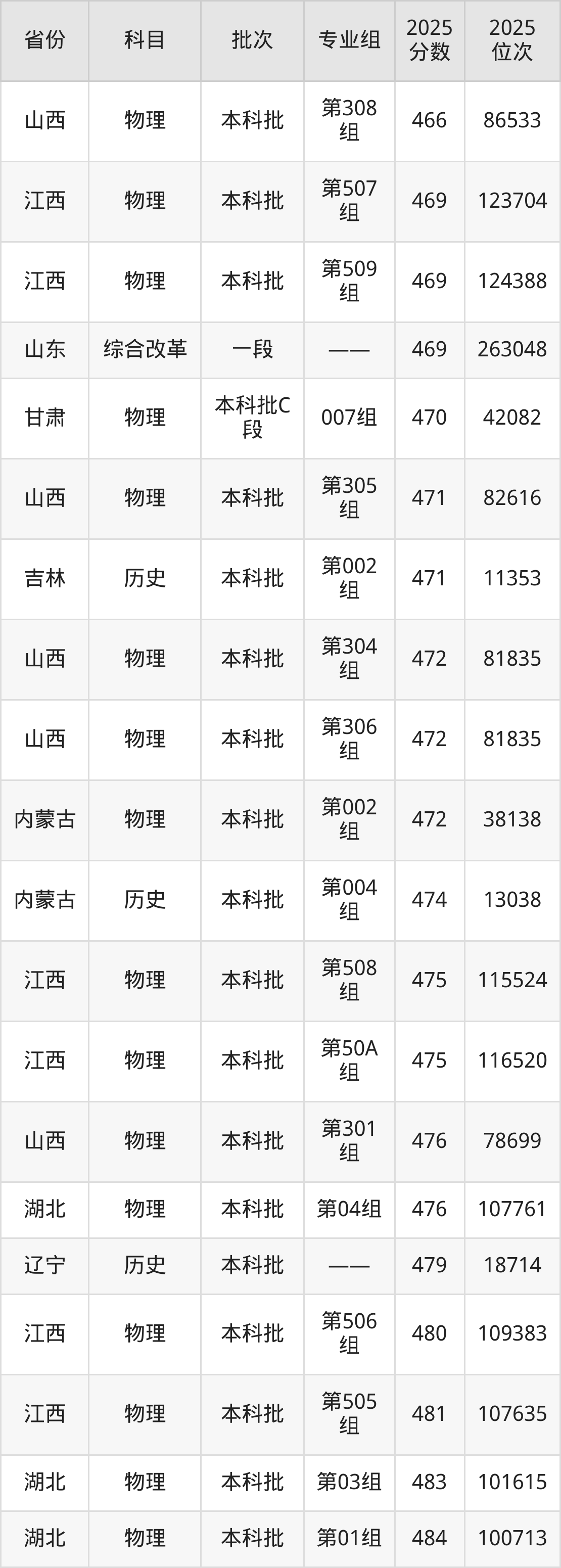 最低录取分数线是469分,对应位次是263048名,招生地区为山东;