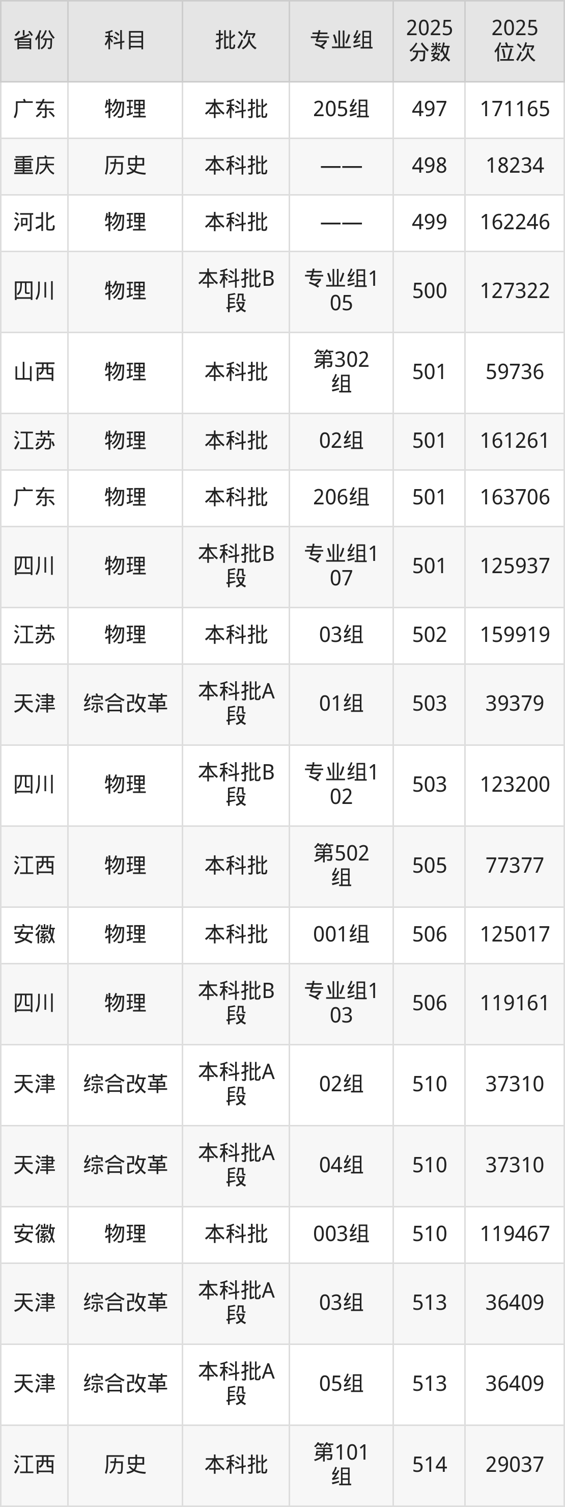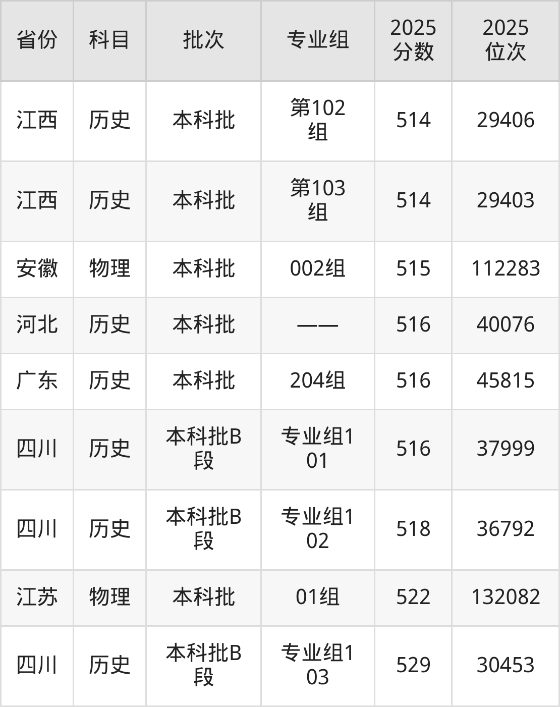 最高录取分数线是529分,对应位次是30453名,招生地区为四川。