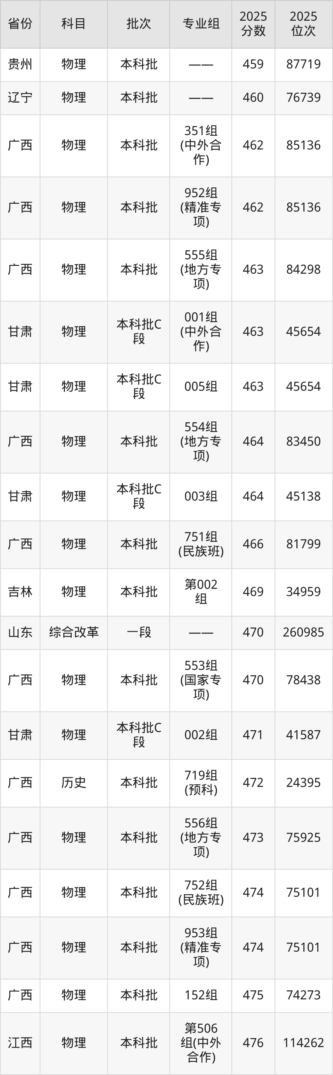 2025年北部湾大学在各省历史类的录取分数线位于458分-546分之间。