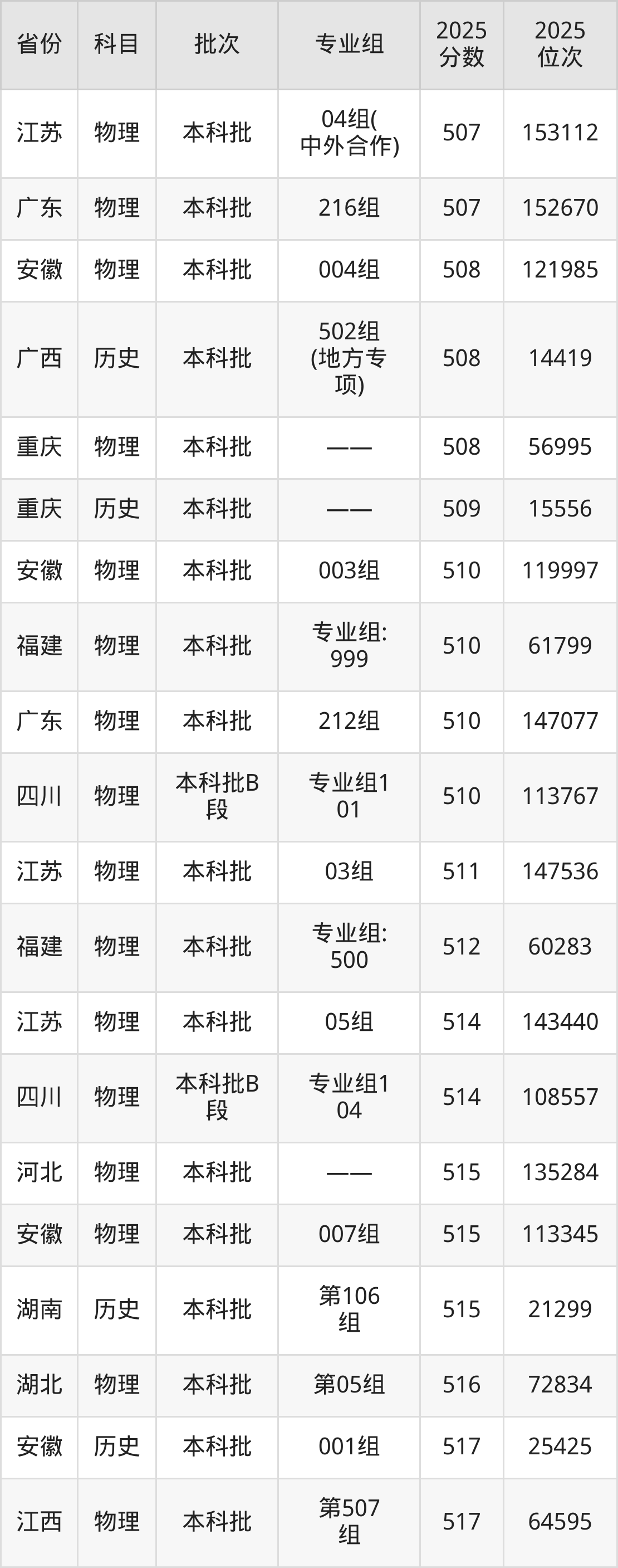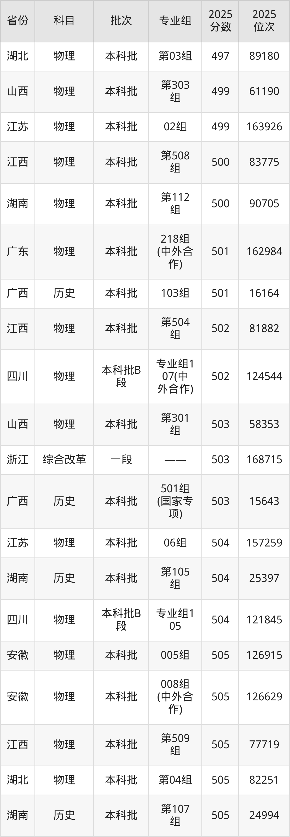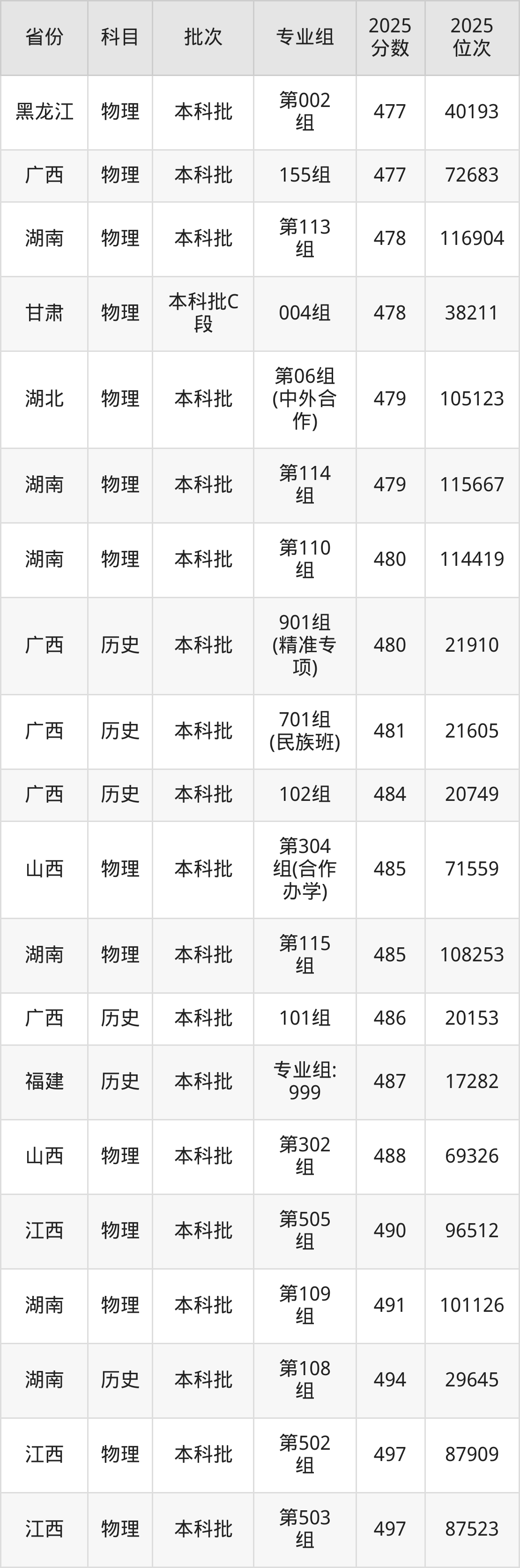 2025年北部湾大学在各省普通批录取分数线一览表: